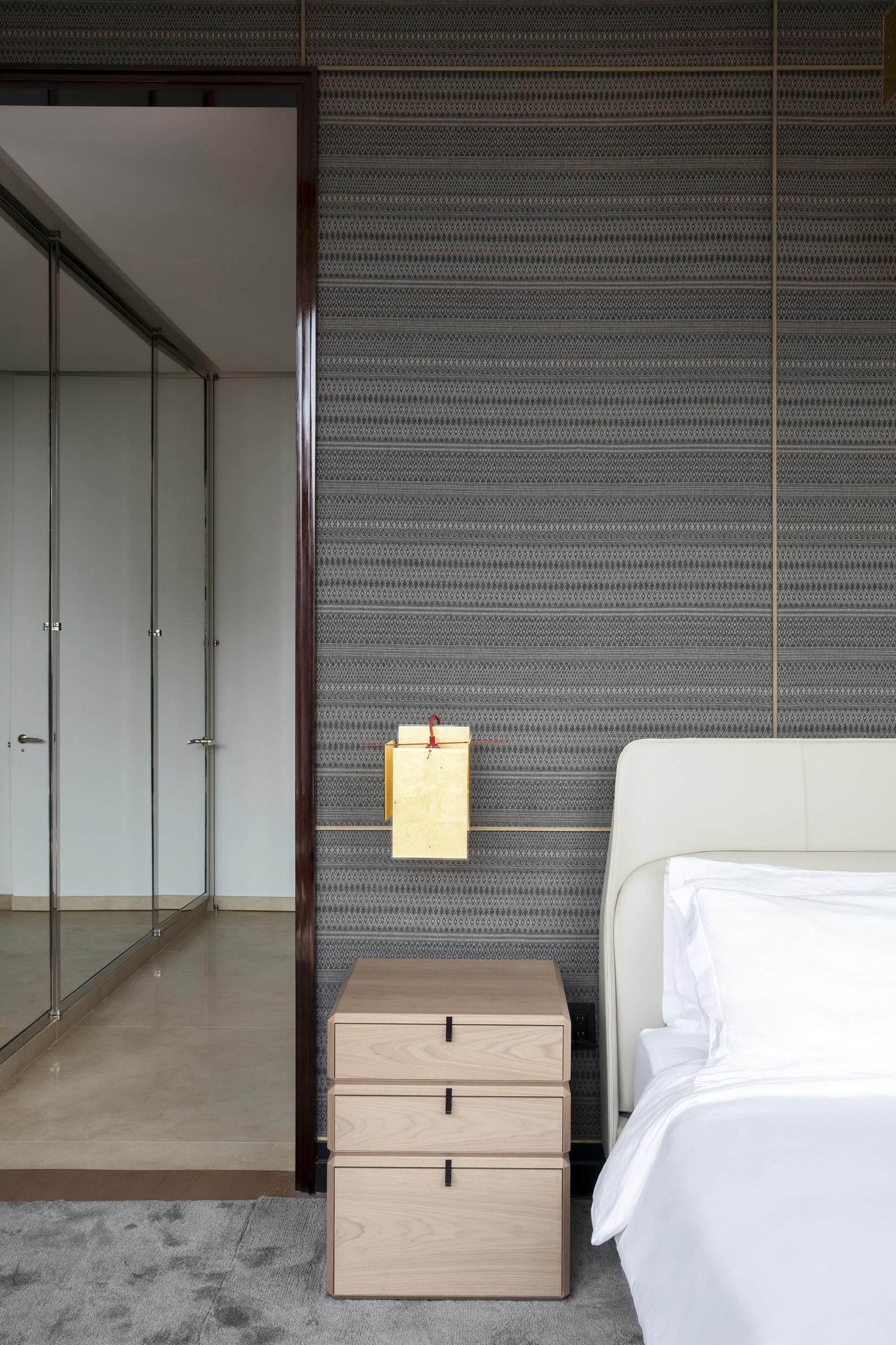 Within the residence, design pieces from the Molteni&C Collection further articulate the space. The Skin sofa and armchairs by Jean Nouvel float with sculptural presence in the living area, offering a dynamic interplay of structure and suspension. Crafted in self-supporting hide leather, their form recalls Nouvel’s architectural language from the Musée du Quai Branly, transformed here into a poetic object of rest.