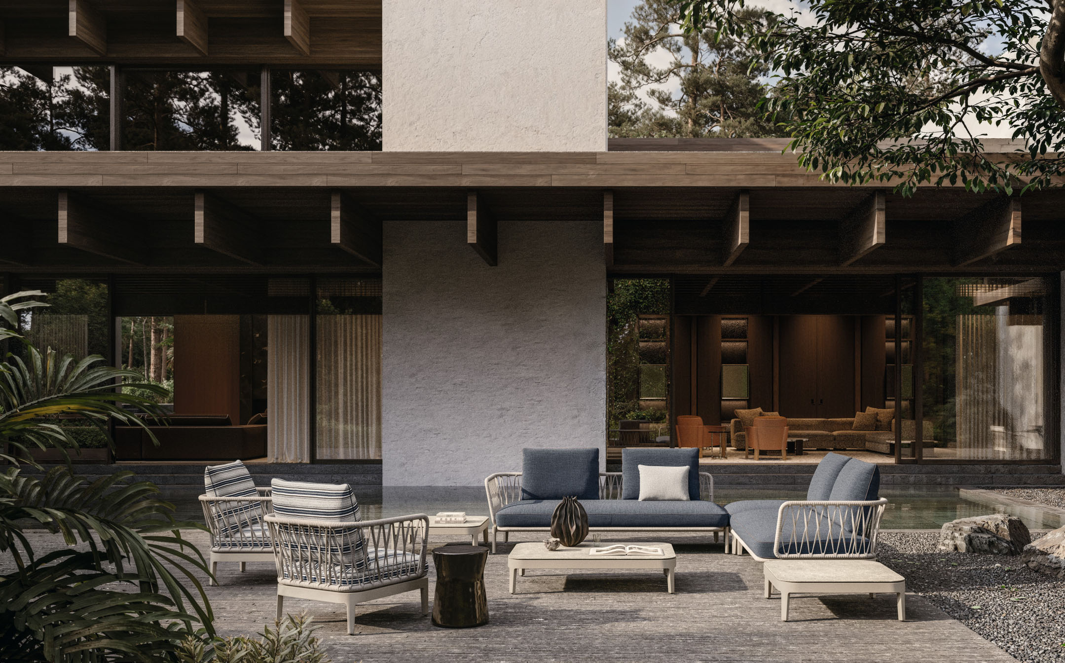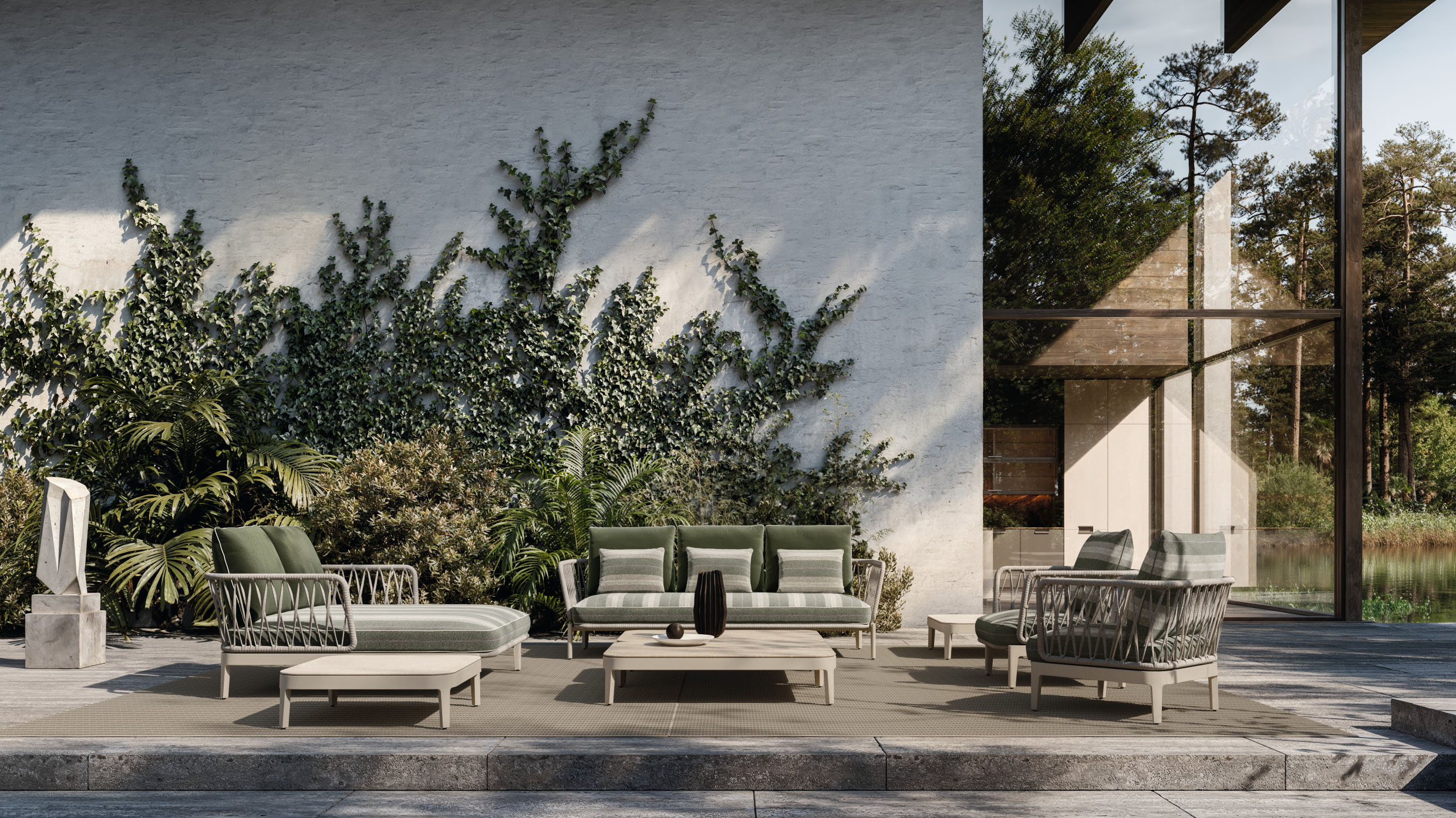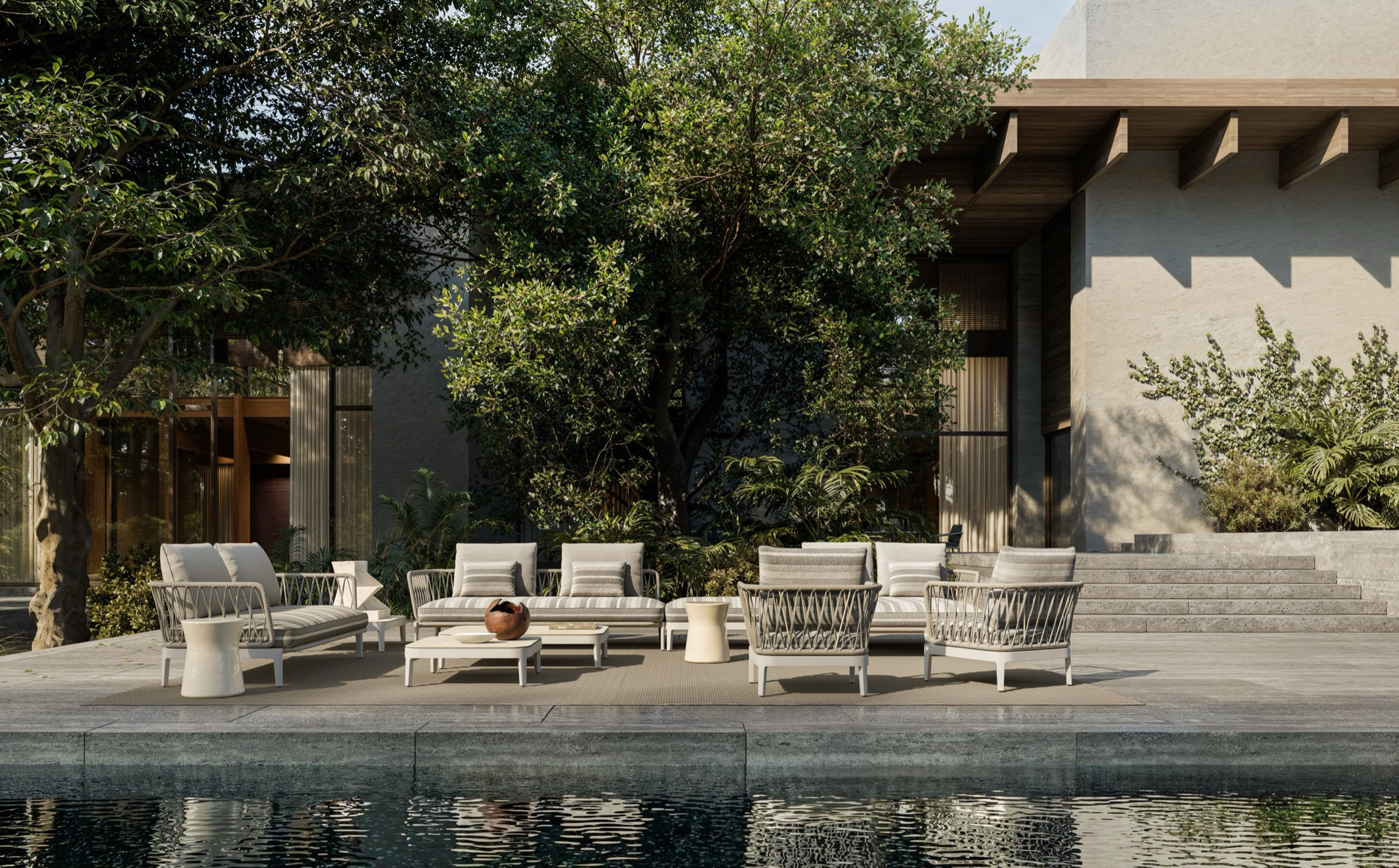 A refined evolution of the original indoor concept, the Chelsea Modular Outdoor sofa reinterprets its distinctive identity for open‑air living while preserving the collection’s formal coherence. Developed by Studio Dordoni, the outdoor version translates the architectural clarity of the indoor system into a structure engineered for durability, comfort, and visual elegance.