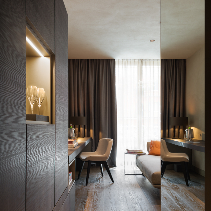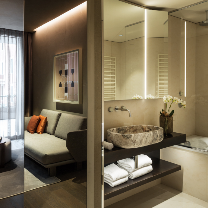 Set in the heart of the emerging Porta Volta neighborhood, Hotel Viu Milan manages to capture the zeitgeist of the modern-day city with its progressive and sustainable architectural concept, while honoring the classic aesthetics of Milanese design with its sleek interiors. The visual concept of the hotel’s interiors was entrusted to Arassociati Studio and Nicola Gallizia Studio.