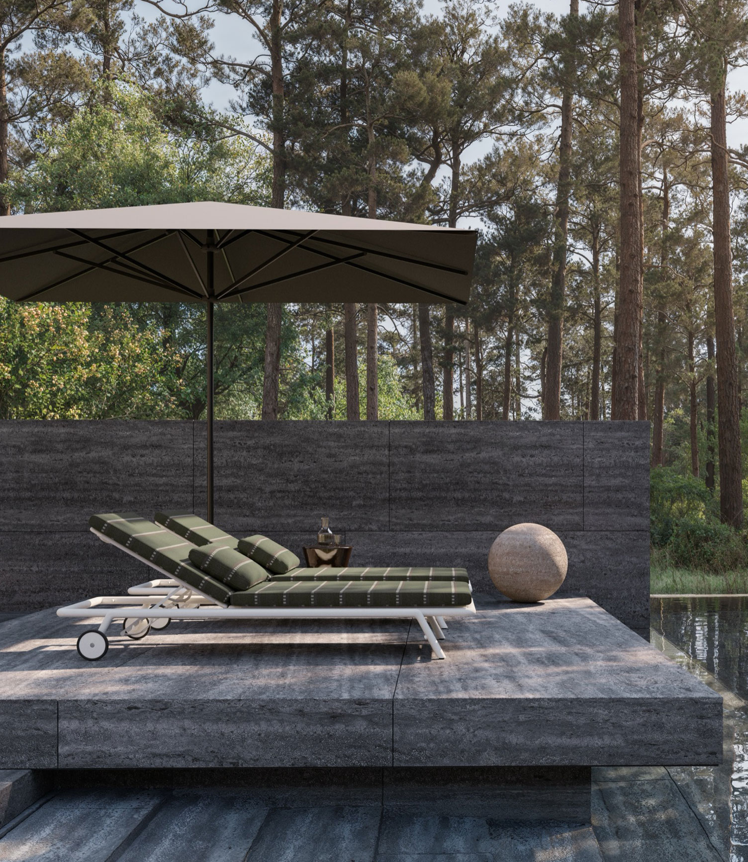 Fronda 推出了三种款型,轻松满足空间和功能方面的不同需求。伸缩式中央杆遮阳伞配置双蜘蛛吊系统,方便置于桌子上方遮风挡雨;悬臂款型可 360°旋转,更具稳定性,提供广泛的遮阳范围;伸缩式悬臂遮阳伞采用精密的钩簧机构,实现流畅的开合。