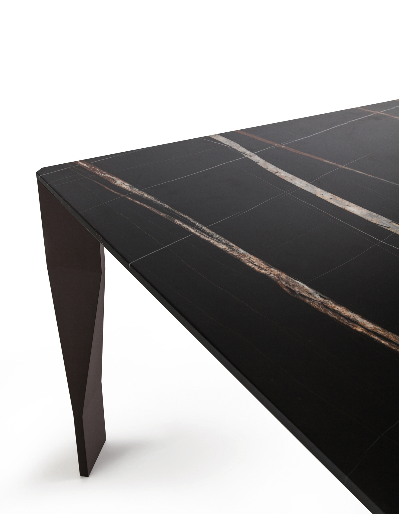 Ein gekonnt aus leichter gefalteter Aluminiumfolie zusammen gesetztes Element mit einem Innenleben aus Aluminium- und Polyurethanschaumstoffeinsätzen für die Stabilität. Die Platten sind aus Glas oder Marmor lieferbar in Kombination mit Gestellen aus hochglänzendem Aluminium, matt lackiert oder hochglänzend lackiert. Diamond wurde mit dem Red dot design award Best of the best 2005 ausgezeichnet.