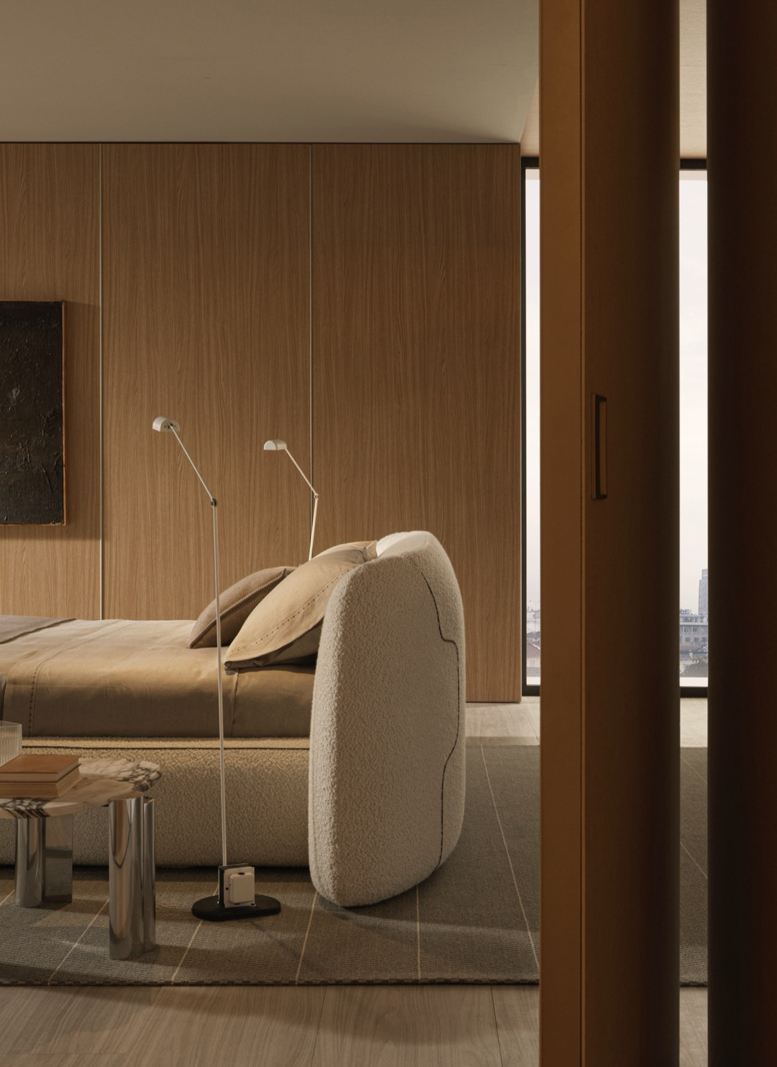 Das von dem visionären Duo Yabu Pushelberg entworfene Bett Theo ist ein wahres Fest an Komfort, Wärme und einhüllendem Design. Mit seinen weichen, abgerundeten Formen und großzügigen Proportionen bietet Theo ein ganzheitliches Entspannungserlebnis - eine Einladung, sich in einer Umarmung aus unbeschwertem Luxus zu entspannen.