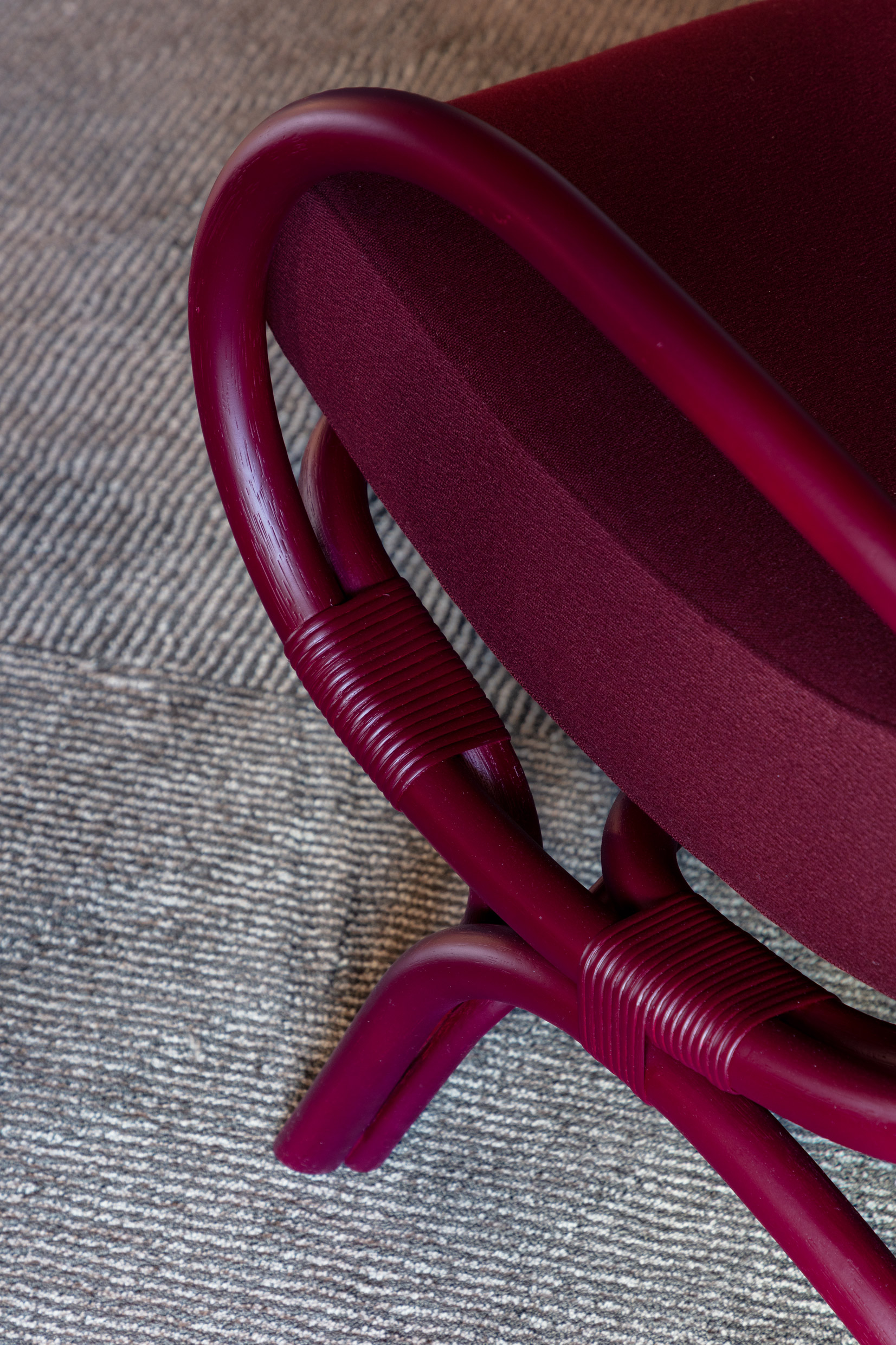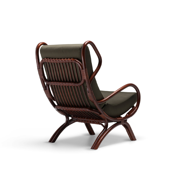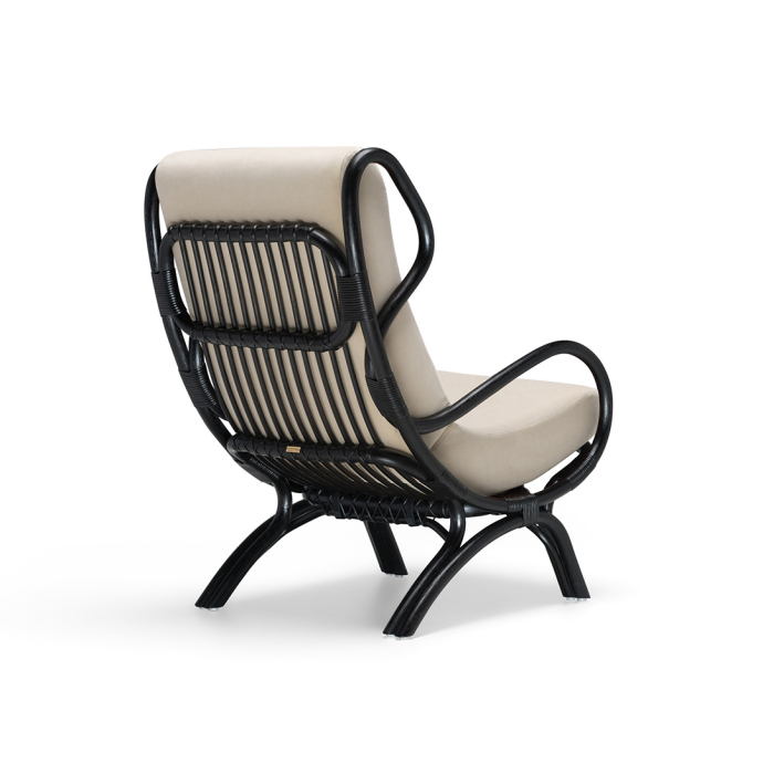 The design of the Continuum armchair aims to materialize a continuous and sinuous brushstroke, inspired by organic forms, elegantly realized through the uninterrupted line flowing from headrest to armrest. The Continuum draws further inspiration from bergères designed in the early 1950s for hotels and cruise ships. Crafted entirely in Italy, the armchair utilizes first-class materials from the rattan family: manao and malacca sourced from the equatorial forests of Indonesia. The structure and backrest are shaped from manao cane by skilled artisans, and each piece demands over 200 hours of meticulous craftsmanship. The seat, crafted from canes with a smaller diameter, is affixed to the structure using special flat rattan cane.