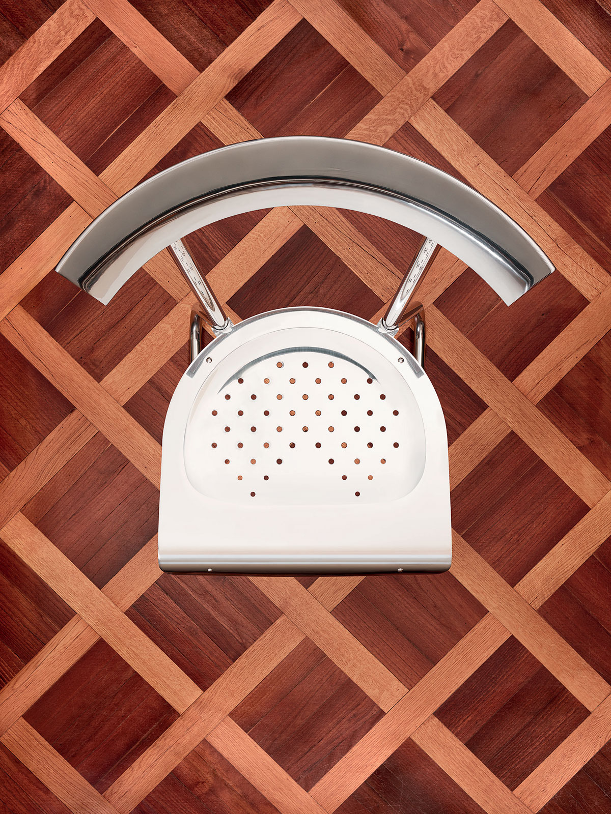 The Chair designed originally in 1935 for the first Montecatini Building in Milan. This re edition is produced based on the original drawings from the Gio Ponti Archives. Entirely built from polished aluminium.