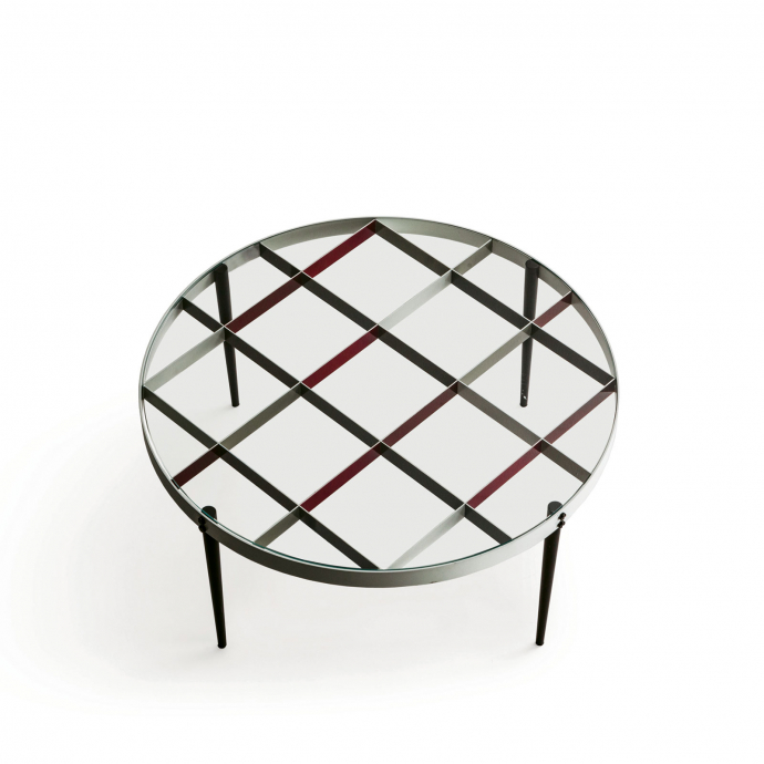 It completes the Gio Ponti Collection which was a furnishing range designed by the architect between 1935 and 1950s. Metal hand painted structure and glass top.