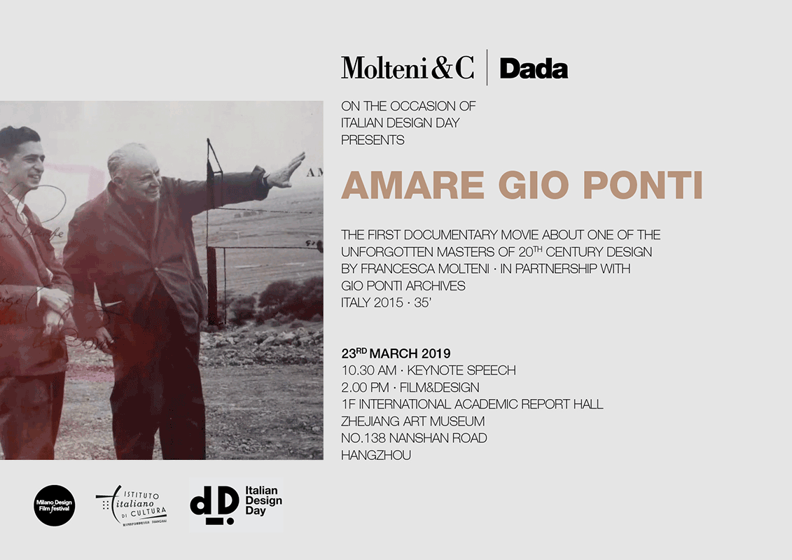 Molteni&C|Dada in collaboration with MDFF participate to Hangzhou Design Days, an integrated promotion project launched by the Italian Foreign Ministry to highlight the excellence and peculiarities of Italian design around the world with “Amare Gio Ponti”: the first documentary film about one of the unforgotten masters of Italian design.