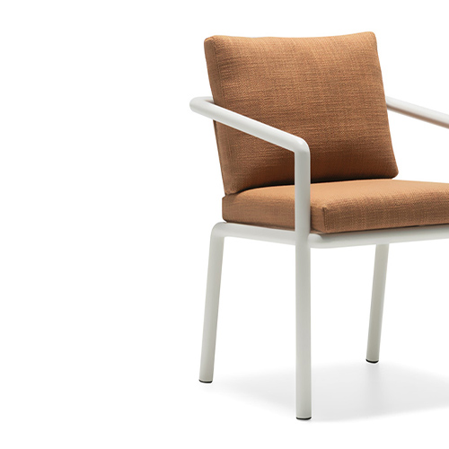 The Chelsea Outdoor armchair by Studio Dordoni distills the character of Rodolfo Dordoni's original indoor design into a compact and expressive form, uniting craftsmanship, comfort, and architectural clarity. Its powder‑coated aluminum base defines a lightweight yet robust structure designed to withstand outdoor conditions without sacrificing elegance. The distinctive geometry of the frame highlights the armchair’s balanced proportions, giving it a presence that feels both understated and confident.