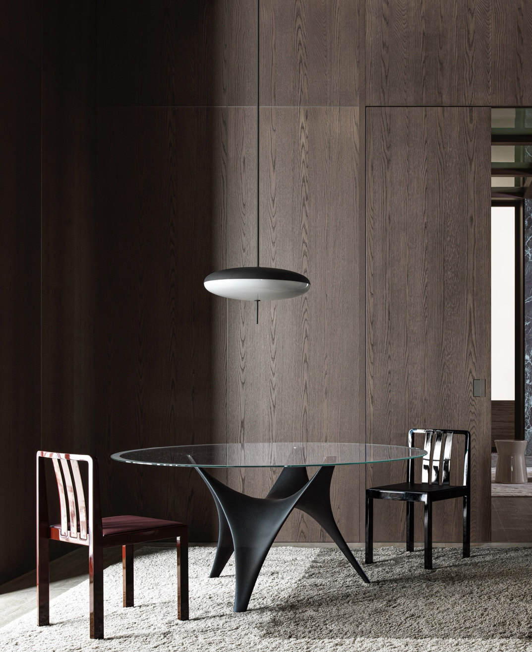 Designed by Michael Anastassiades, the 1 2 3 chair embodies a harmonious blend of sophistication and comfort, emphasizing the essence of color and the purity of materials. Its name whimsically reflects the process of finding the ideal balance in the number of vertical slats adorning the backrest. After thoughtful consideration and testing, three slats were chosen, resulting in a structure that exudes elegance and lightness, embodying a refined synthesis of design principles.