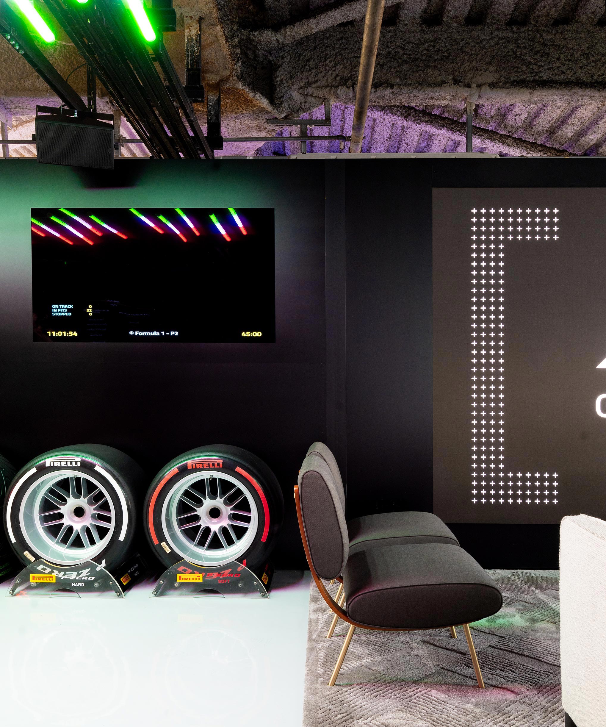 Guests have access to exclusive trackside spaces featuring iconic pieces, like Gio Ponti’s Round D.154.5 armchair designed back in 1954, and bespoke custom solutions created by Molteni&C to enhance the experience of Formula 1® races.