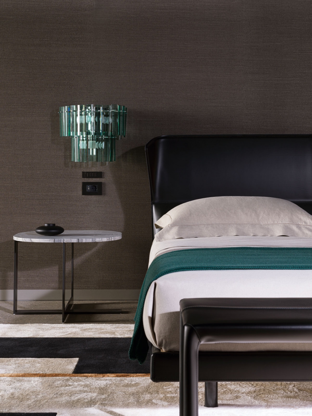 Powder coated steel structure completely covered in regenerated hide-leather in the colors of the Molteni&C range.