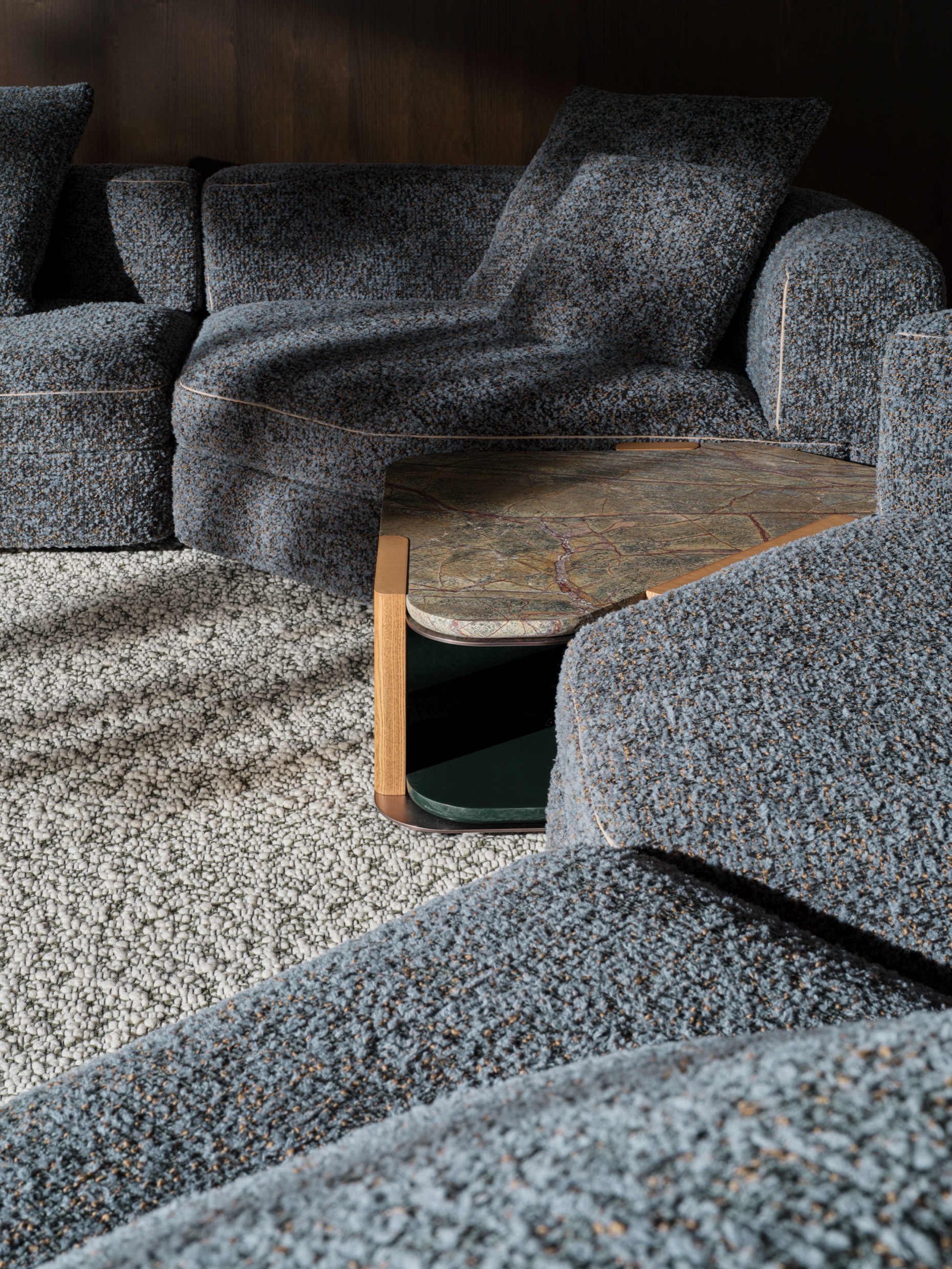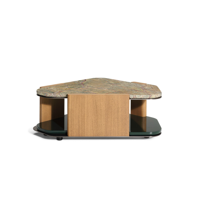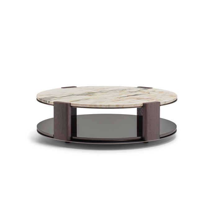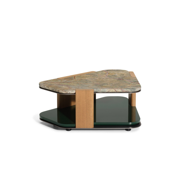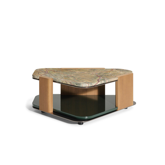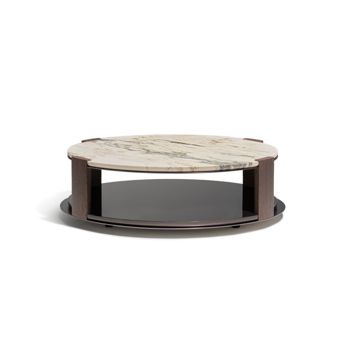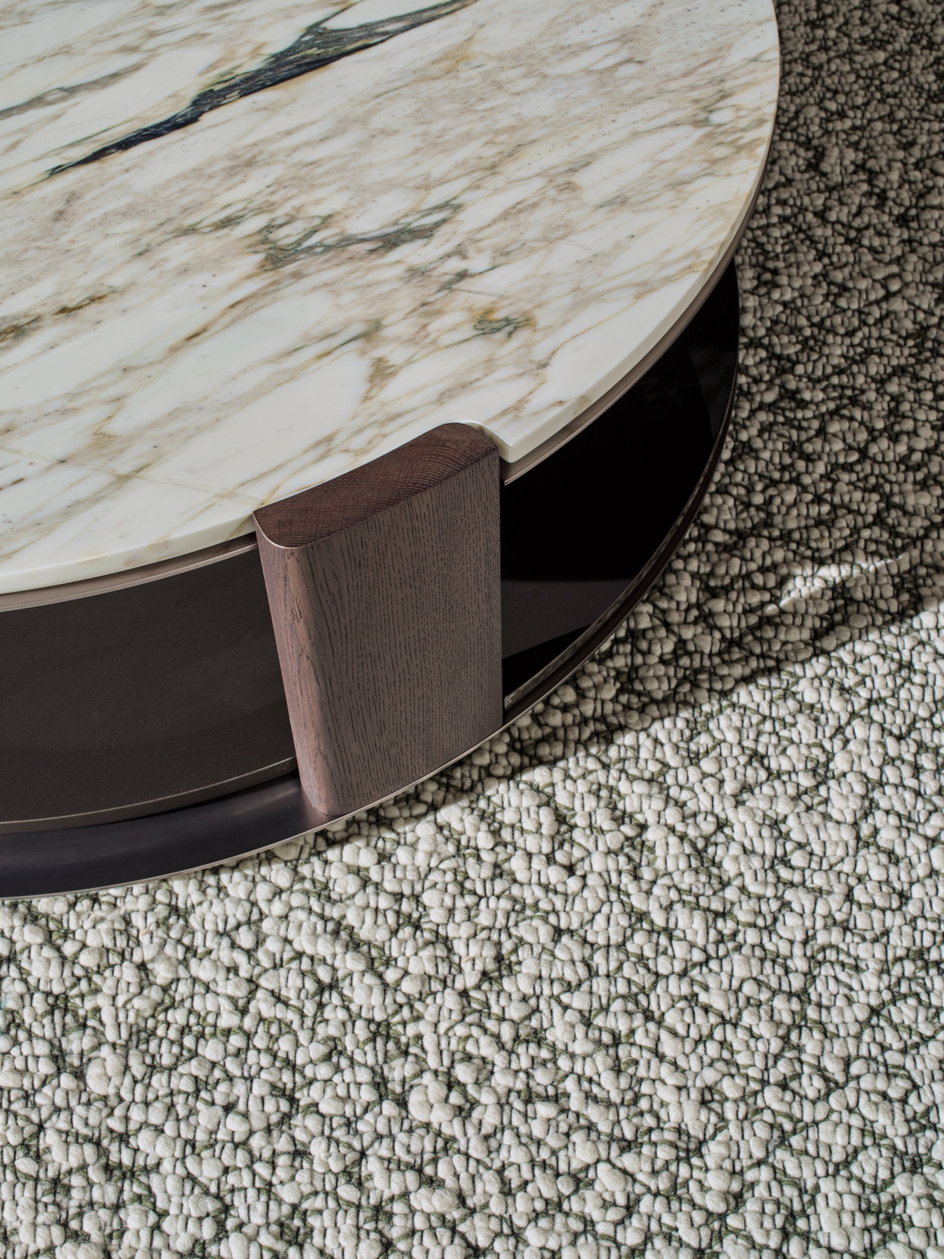 Christophe Delcourt a imaginé sa table basse Jeanne comme un système de connexions dans lequel le piètement et les plateaux sont conçus comme des éléments indissociables plutôt que comme des pièces distinctes. La création Jeanne s’articule autour d’une structure centrale qui soutient et relie deux plans superposés, lui conférant ainsi un ordre architectural clair et un équilibre formel affirmé.