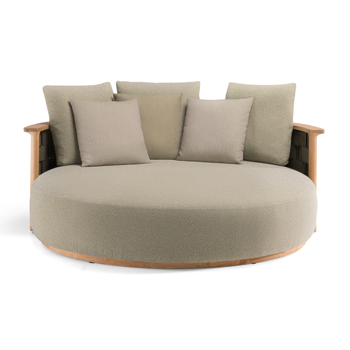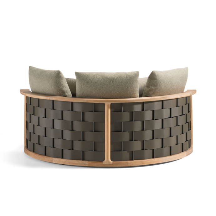 Le canapé Palinfrasca, à la forme iconique immédiatement reconnaissable, rend hommage à l'œuvre de 1994 de Luca Meda dont il s'inspire, et interprète l'essence du teck non seulement d'une manière inédite et contemporaine, mais aussi en représentant de la manière la plus exhaustive le savoir-faire et la recherche de Molteni&C sur les matériaux : un savoir acquis au cours des presque quatre-vingt-dix ans de vie de l'entreprise, fondée en 1934.