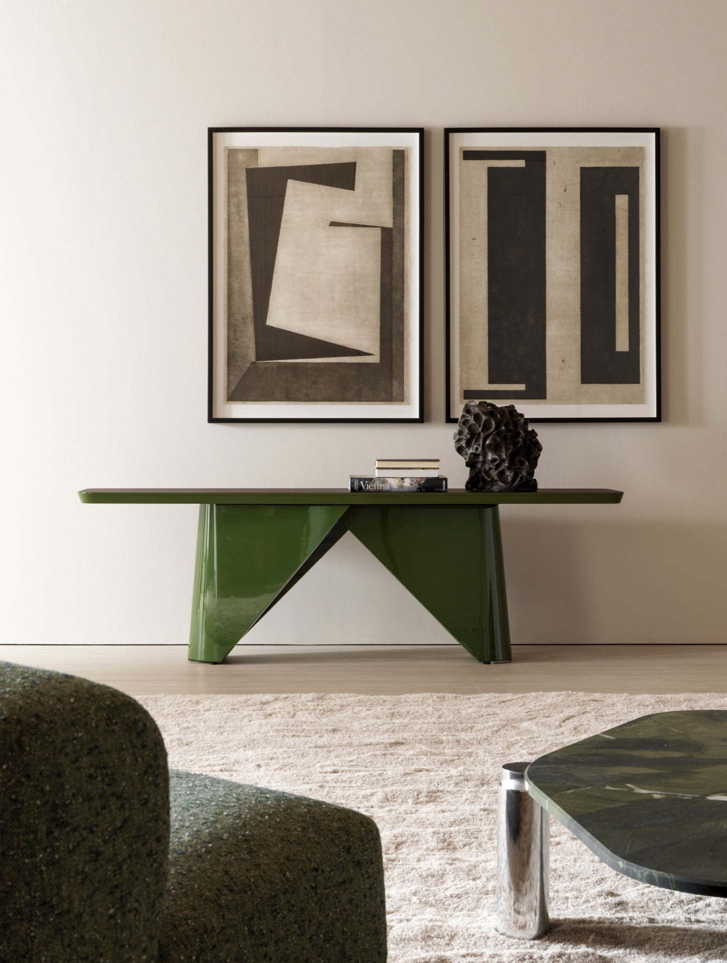 La console Pénélope de Christophe Delcourt séduit par ses lignes organiques et son élégance sculpturale. Cette pièce remarquable met en valeur n'importe quel espace, où ses matériaux raffinés et sa géométrie réfléchie se fondent dans une harmonie parfaite.