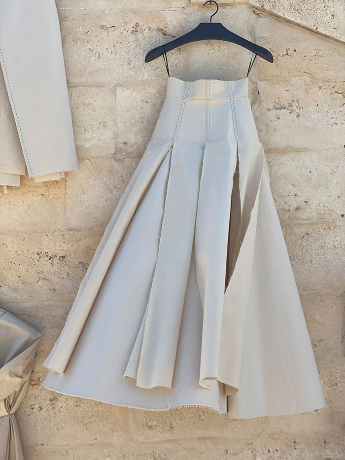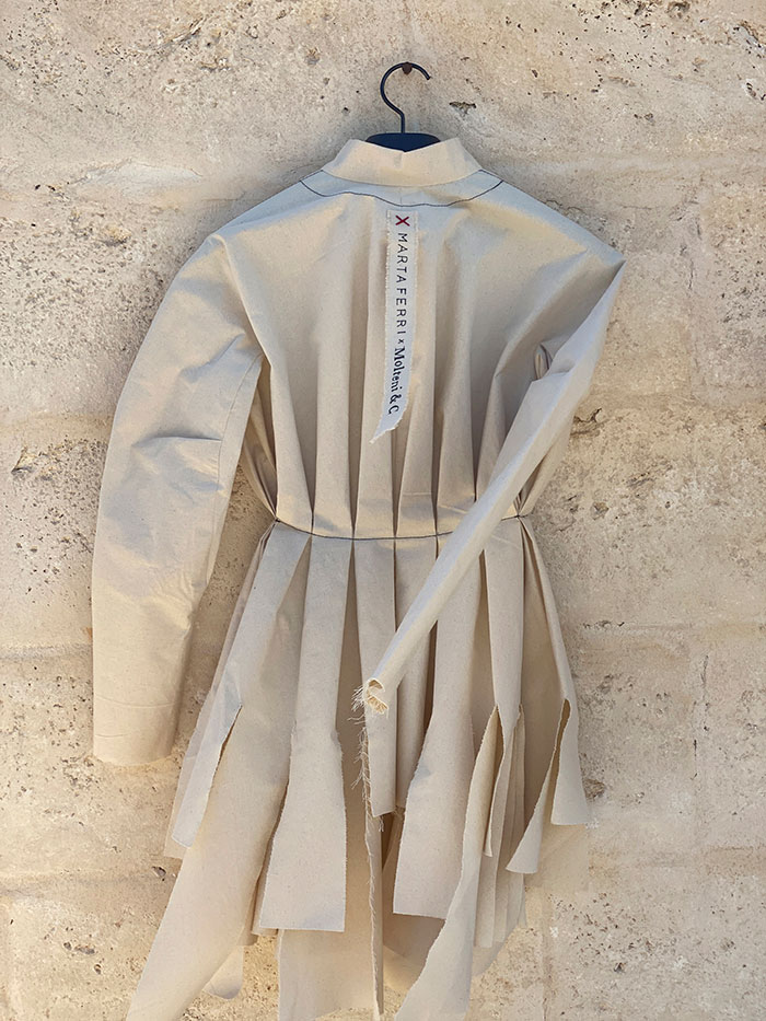 L’estetica pura mette in scena l’autenticità, l’artigianalità, il valore unico dello “stile” italiano. Degli abiti “scultura” essenziali, rigorosi, graficamente dinamici e spettacolari: ecco svelato il valore di una eleganza oltre il tempo che Marta ha saputo creare per rappresentare tutti i passaggi sconosciuti e segreti ai più, che costituiscono l’essenza e l’anima di ogni capo.