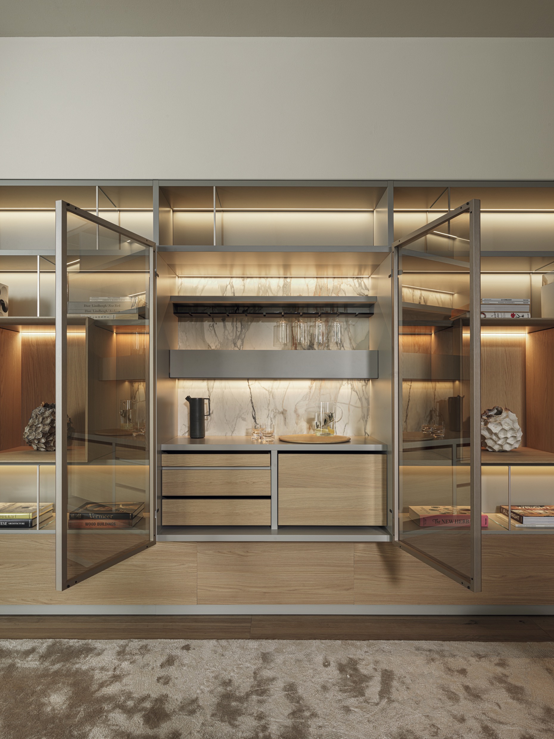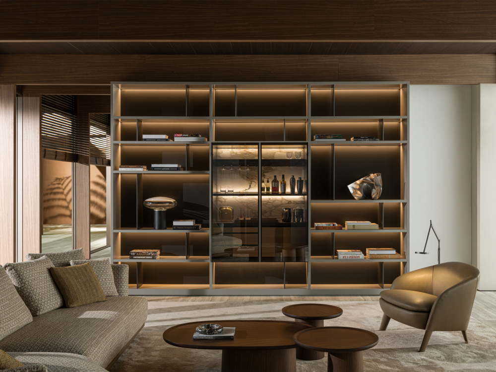 Il sistema 505 UP, un punto di riferimento nella gamma di mobili modulari per le aree living di Molteni&C, continua la sua evoluzione per rispondere alle esigenze dello stile di vita contemporaneo. Nato non solo come progetto di arredo ma anche come elemento architettonico, crea spazio e gioca con geometrie che ricordano gli edifici di una città.