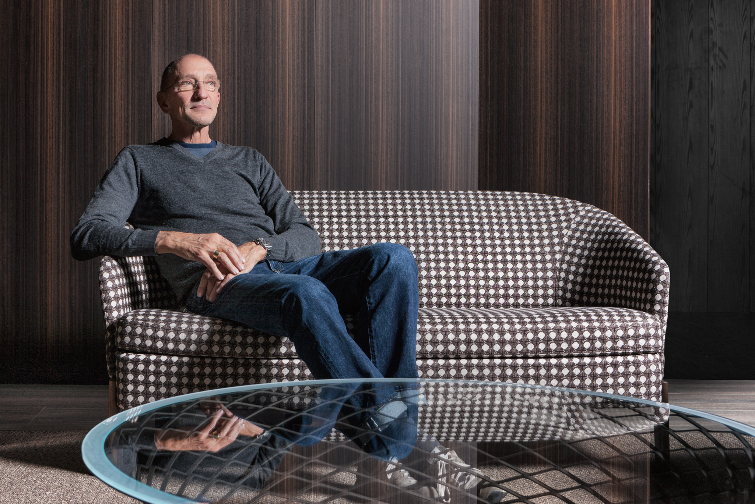 La collezione Chelsea, progettata da Rodolfo Dordoni nel 2014, si arricchisce di tre nuovi elementi: un divano e una poltrona, entrambi caratterizzati da schienali avvolgenti, e una panca. Tutti gli elementi sono pensati per creare un angolo raccolto in un grande living, e disegnano uno spazio speciale dedicato alla conversazione e al relax. La struttura in massello di legno, dalle geometrie essenziali, si bilancia con la linea fluida degli schienali, per dare vita a una seduta confortevole e raffinata.