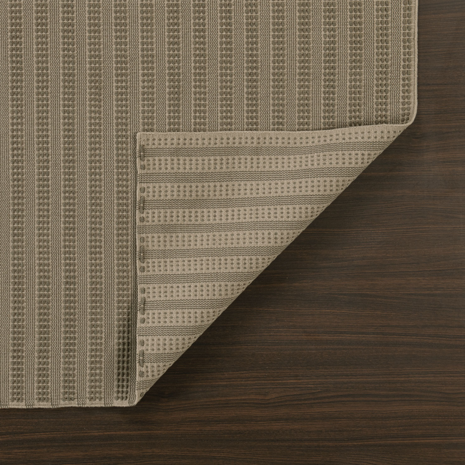 Hedera è scandito da un ritmo armonioso composto da strisce verde oliva e beige. Un motivo screziato, delicato ma deciso, pensato per abbinarsi sia all’essenza del legno che alla matericità del ferro brunito.