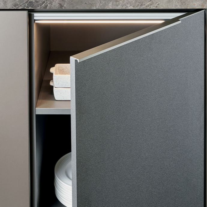 Applied horizontally at the top of the door or drawers and vertically on the range column. To define the positioning consult the technical introduction of the price list.