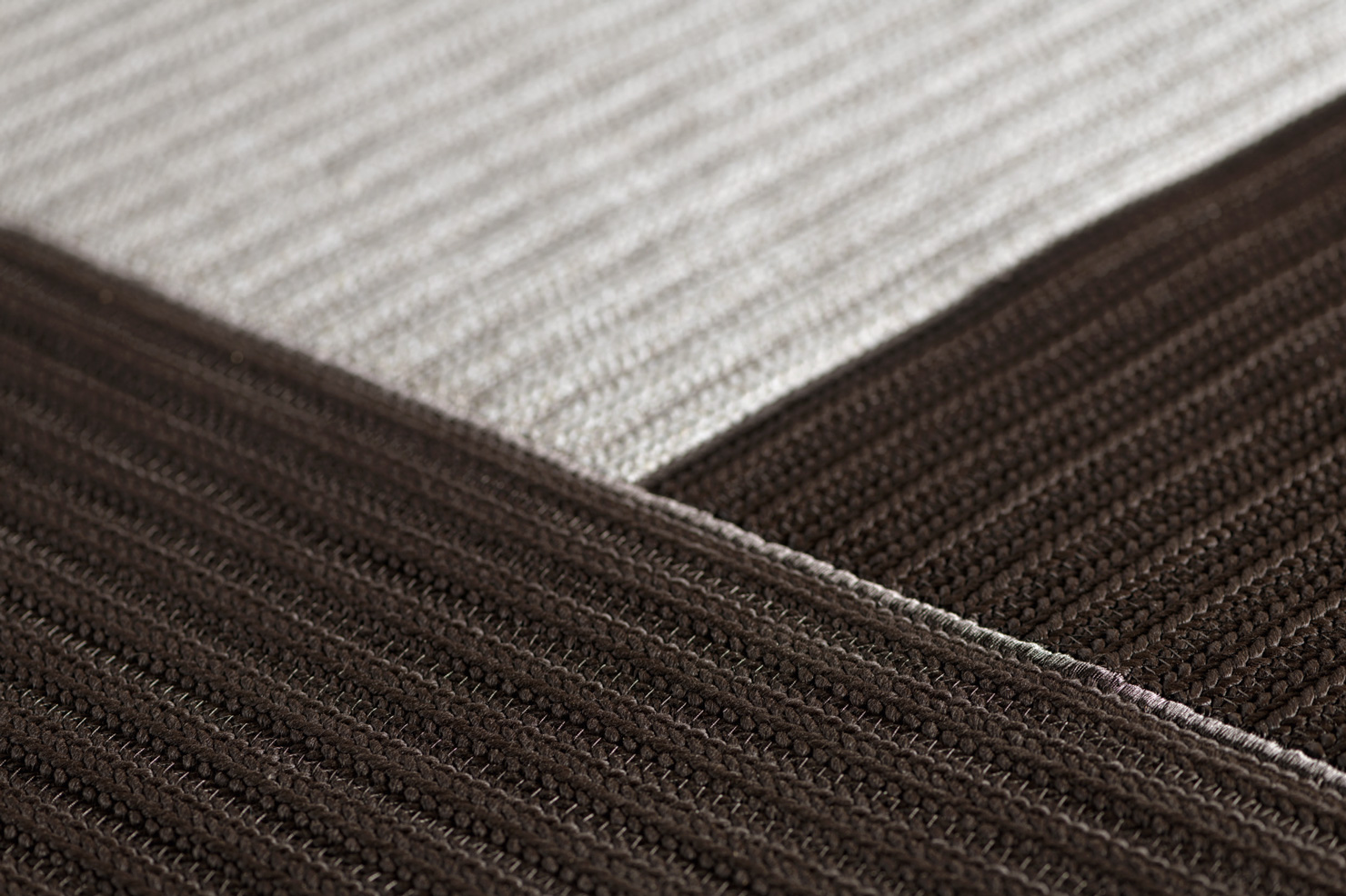 Musco, di Marta Ferri, propone geometrismi e fasce a rincorsa che esaltano una palette che trae ispirazione delle sfumature del sottobosco. Disponibile sia monocromo in sabbia e verde oliva, che multicolor nelle tonalità del verde oliva, marrone terra e sabbia, viene completato da frange tono su tono o a contrasto. Due forme ben distinte - rettangolare e tonda – caratterizzate da una mano rustica ma piacevole al tatto.