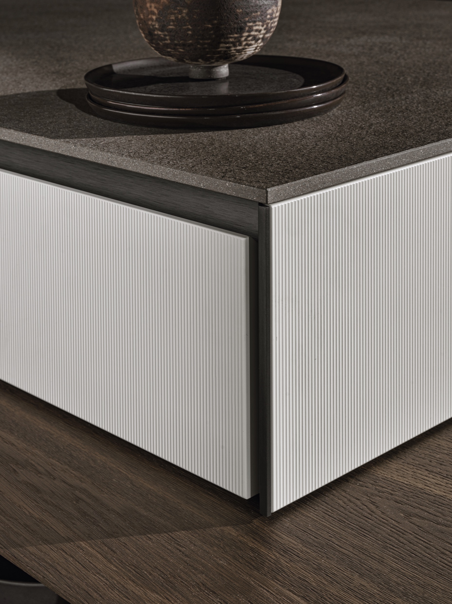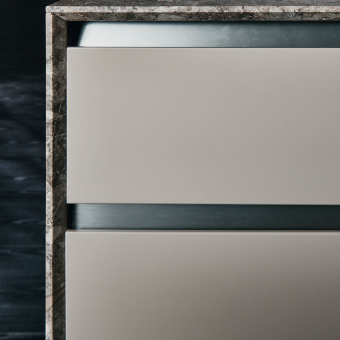 Prime nasce per esprimere al massimo le potenzialità di una cucina caratterizzata da apertura con gola. Si declina in numerose varianti compositive per le più sofisticate esigenze estetiche. La gola percorre il prodotto senza interruzioni e termina sui fianchi riportati, soluzione alternativa ai fianchi finiti per lasciare massima libertà di personalizzazione. L’anta di Prime è sagomata nella parte superiore a 45° per rendere l’apertura più semplice ed ergonomica.