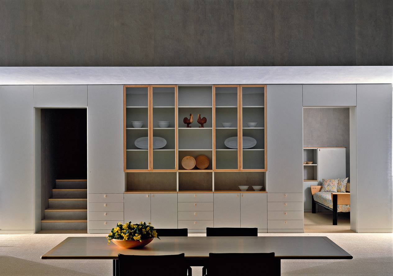 Here we remember just a few of the many projects he developed: daytime systems such as 505 (1972) and Pass (1997); nighttime systems such as 7volte7 (1988) and Glissquattro (1991), Serie Teatro (1982) and the Piroscafo bookcase (1991) with Aldo Rossi; individual furnishings such as Les Beaux Jours (1985), Vivette (1988), Capotavola (1988), Risiedo (1988), Portafinestra (1989) and Primafila (1990); kitchens for Dada, including Vela (1993), Pergola (1986) and Banco (1994); and office furniture such as Misura (1973) with Richard Sapper and Progetto 25 (1985).