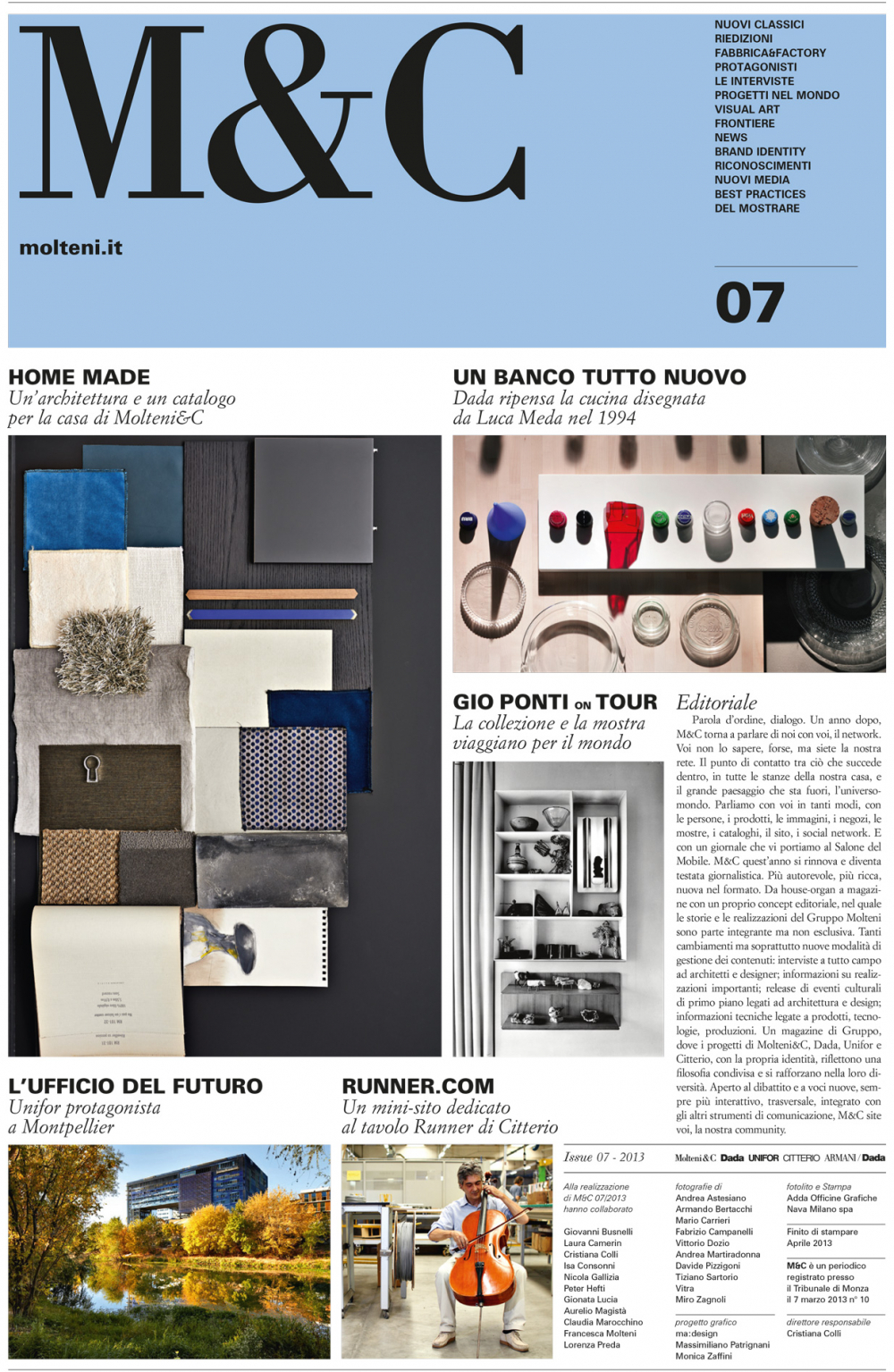The online magazine is enriched with new content every month, organized according to topics and columns: people, product and interior design, the cities and places involved, historic archive documents, books and exhibitions round the world and even photographic portfolios.