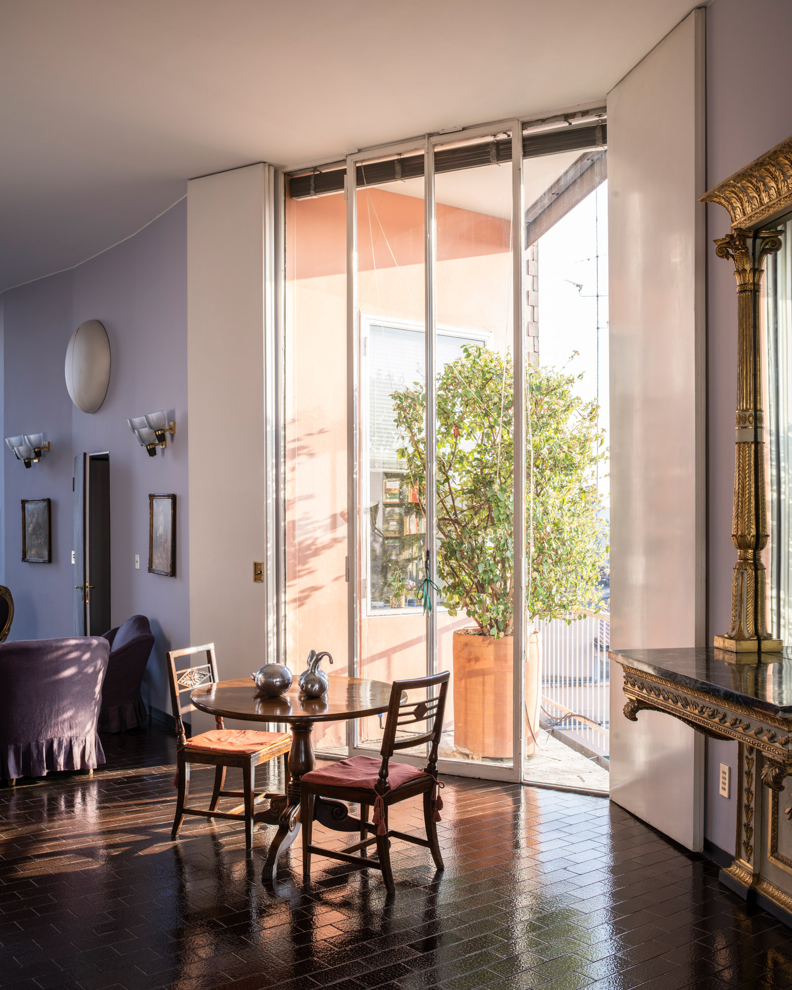 Non stupisce immediatamente per la sua modernità, come un'architettura di Portaluppi, ad esempio Villa Necchi, o le architetture dei BBPR o Albini. Abitandoci e vivendoci, ti accorgi del disegno dei dettagli, delle proporzioni, della ragione delle scelte dei materiali. Priorità massima nel progetto doveva avere la relazione col giardino, quindi l’affaccio a sud rispetto all’affaccio a nord verso il Duomo, non solo attraverso le vetrate, ma anche attraverso le balconate che corrono lungo la facciata. I serramenti a filo dei soffitti, caratteristica di quasi tutte le sue architetture residenziali, premettevano di ottenere la massima superficie luminosa.