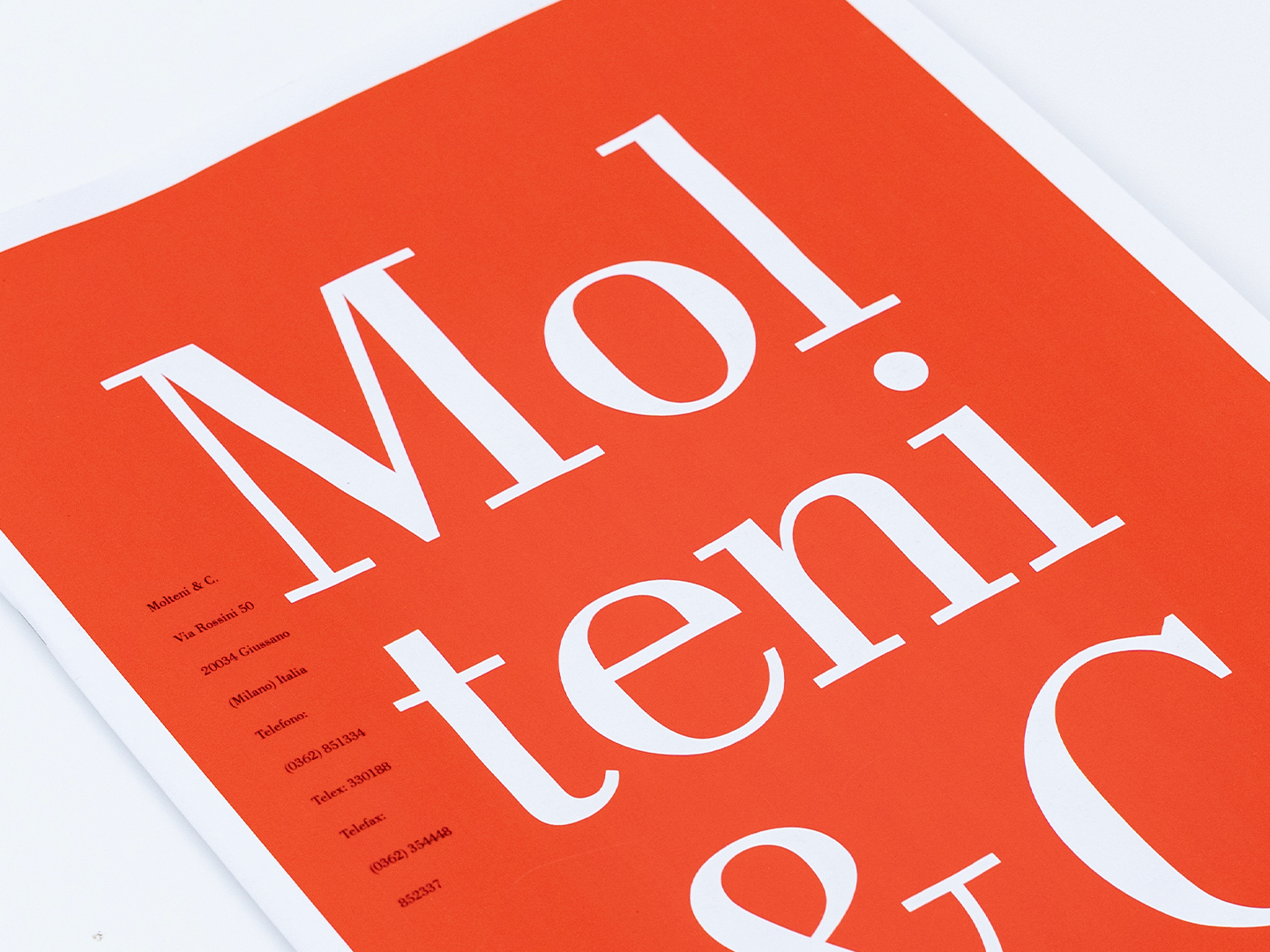 Sempre per la grafica, c’è l’evoluzione dei loghi, dal logotipo di Felix Humm per Molteni&C a quello di Studio Cerri per UniFor, fino al sistema di identità visiva Molteni Group, progettato da Nicola-Matteo Munari.