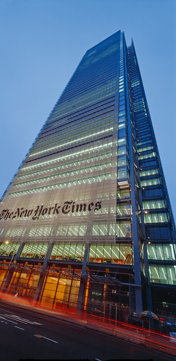 Da anni ormai è il simbolo del giornalismo americano, grazie alla sua affidabilità e autorevolezza. Il 19 novembre 2007 il New York Times ha traslocato dallo storico edificio sulla 43esima strada in una nuova sede sull’Ottava Avenue, progettata da Renzo Piano per il quotidiano “numero uno” negli Stati Uniti.