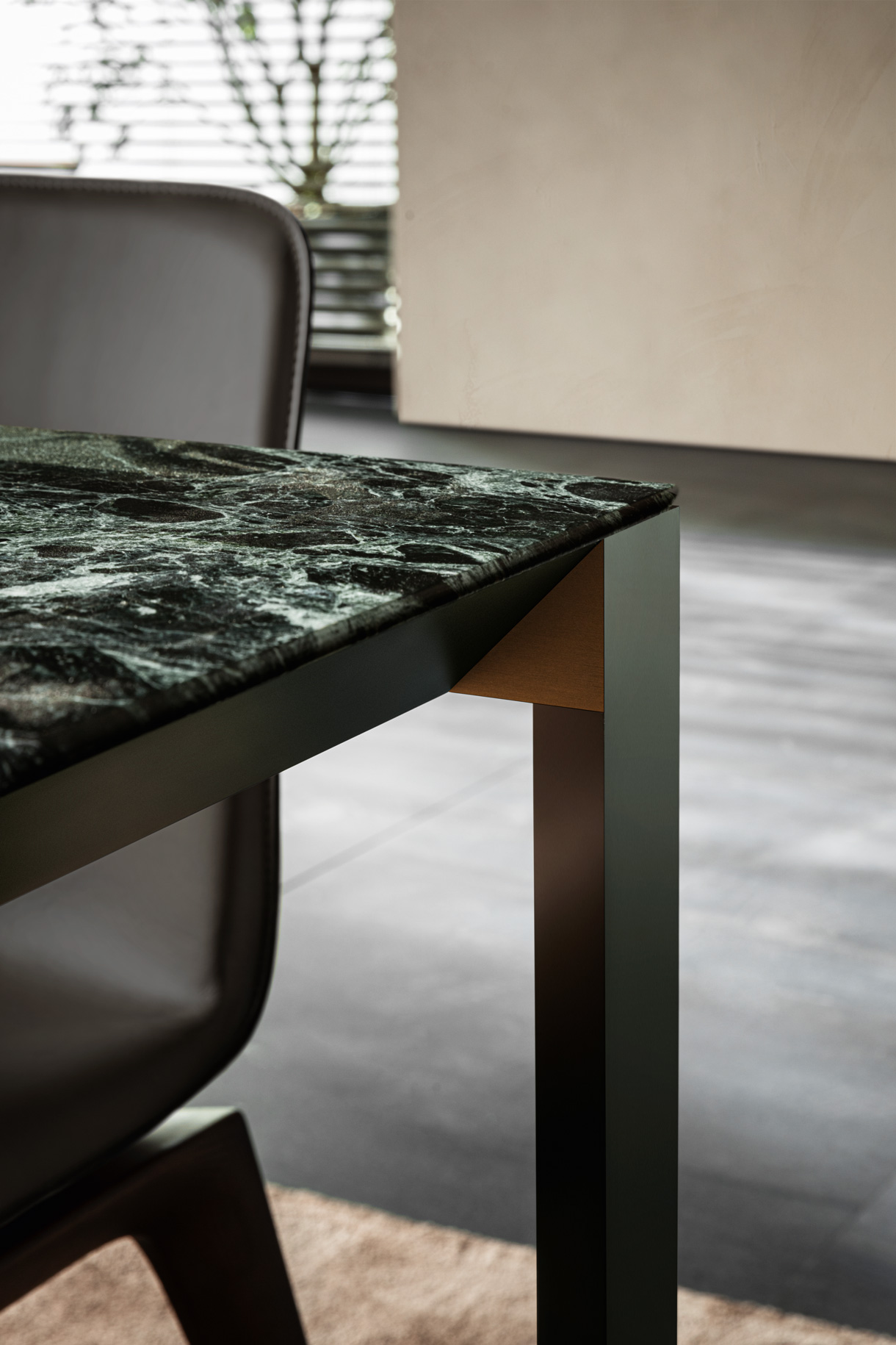 MA It’s an aluminium table. The legs and the frame sections are made from triangular extrusions and they slot into a joint – a very beautiful detail that requires a lot of precision to make. It is prismatic, but because all the sections are triangular, once everything fits together it looks like a cube. This is how we got the name of the table: Half a Square. A triangle of course is just half a square and what’s nice about it is that because all of the parts are separate, you can have different materials and finishes for the legs and tabletop: it allows for a lot of play with colour.