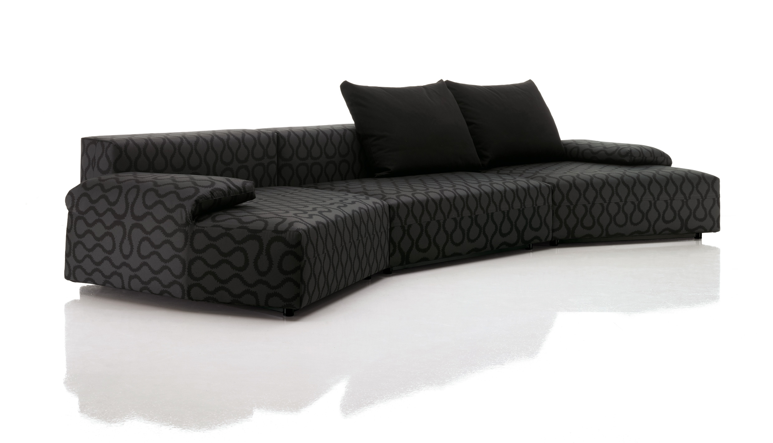 Versatile and open to change, that is Freestyle and Zim: non-conformist without transgressing. For the occasion, they were dressed in Vivienne Westwood creations: a special edition of her Rubbish fabric for Zim, and black Squiggle against an anthracite ground for Freestyle. Patricia Urquiola’s Glove chair was also dressed in Westwood's elegant rubbish. Furnishings like clothes. To be seen and experienced.