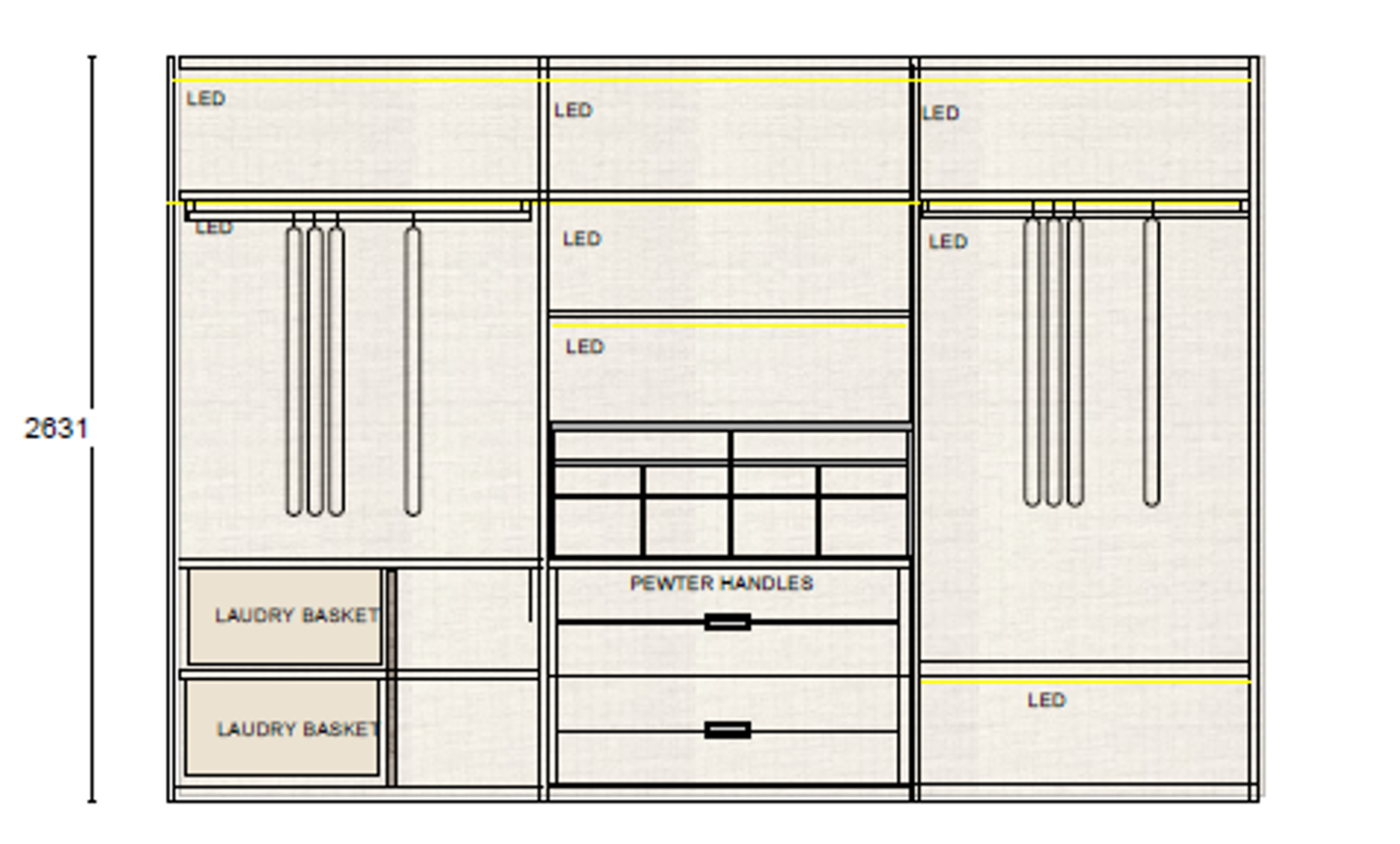 W 396,6cm (13'-0") - H 263,2cm (8'-7") - D 62,4cm (2'-05")