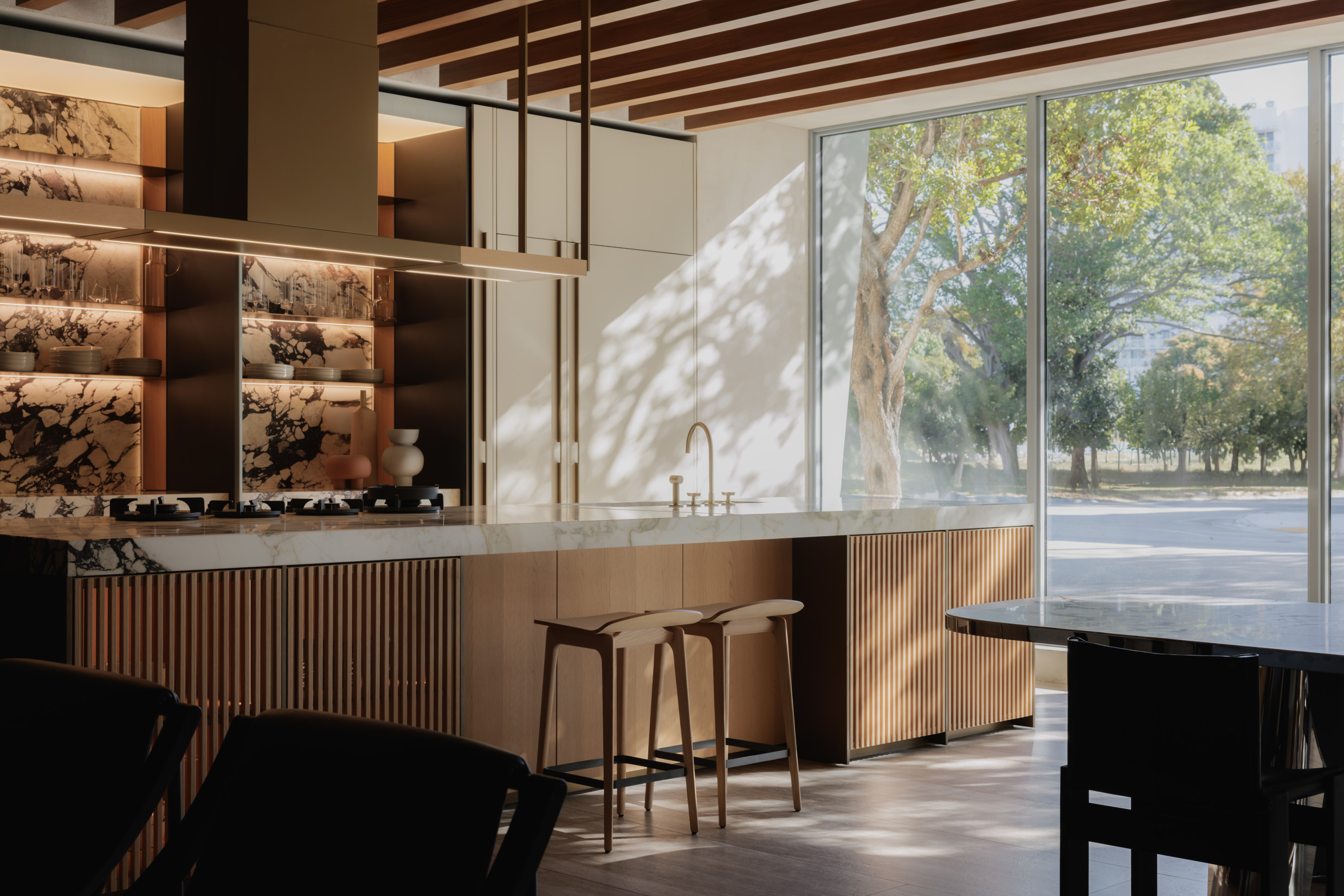 In the heart of the Miami Design District, Molteni&C’s 7,300 square foot Flagship Store shines with new design elements under Creative Director Vincent Van Duysen. The two-story space is infused with a variety of textures, proportions, materials and patterns, coming together with Miami style in mind. Living and sleeping vignettes highlight the variety and custom capabilities of Molteni&C and feature a dramatic display of Molteni&C’s Gliss Master wardrobes. Dada kitchens artfully intermixed throughout the store include a design center for the sleek and elegant Armani/Dada range.