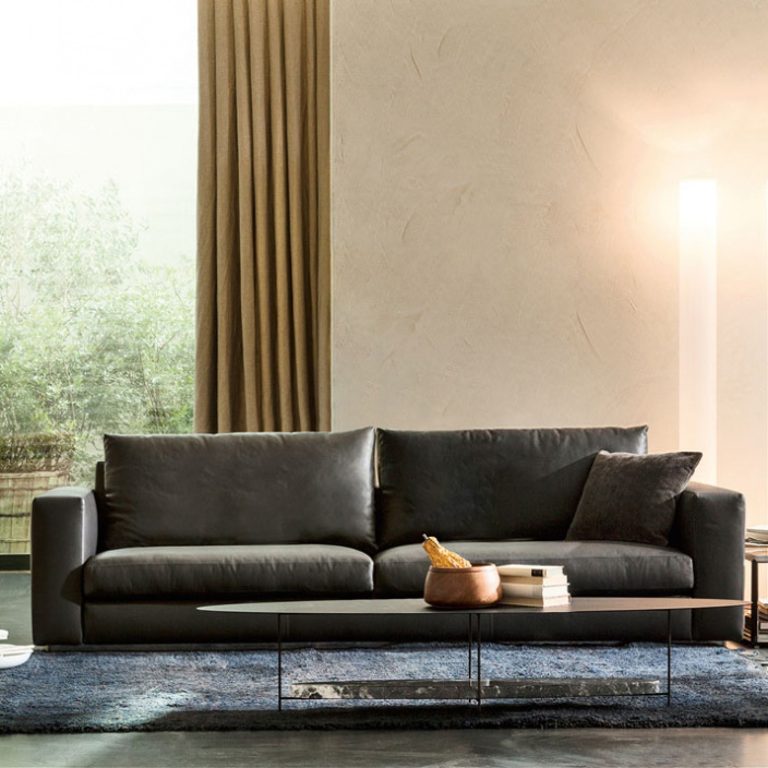 The structure of the sofa is made of variable density polyurethane foam and reversible cushions are placed on it. The Reversi '14 version highlights even more the softness of the shapes, thanks to a technologically advanced padding and wider armrests.