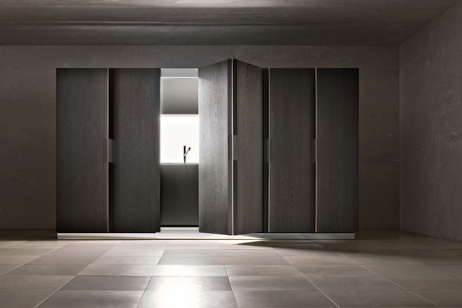 In addition to the quality factor, therefore, attention is dedicated to the sliding mechanisms and doors which in a few seconds, and with simple gestures, must make the environment more formal, without sacrificing the elegance that is given by quality finishes and geometric precision.