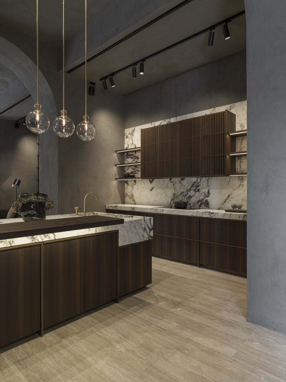 The visitor’s experience unfolds in a material path, with a choice of lighting that leads to immersion in the environment, to the suggestion and emotion of the alternation between space and the geometries of the products.