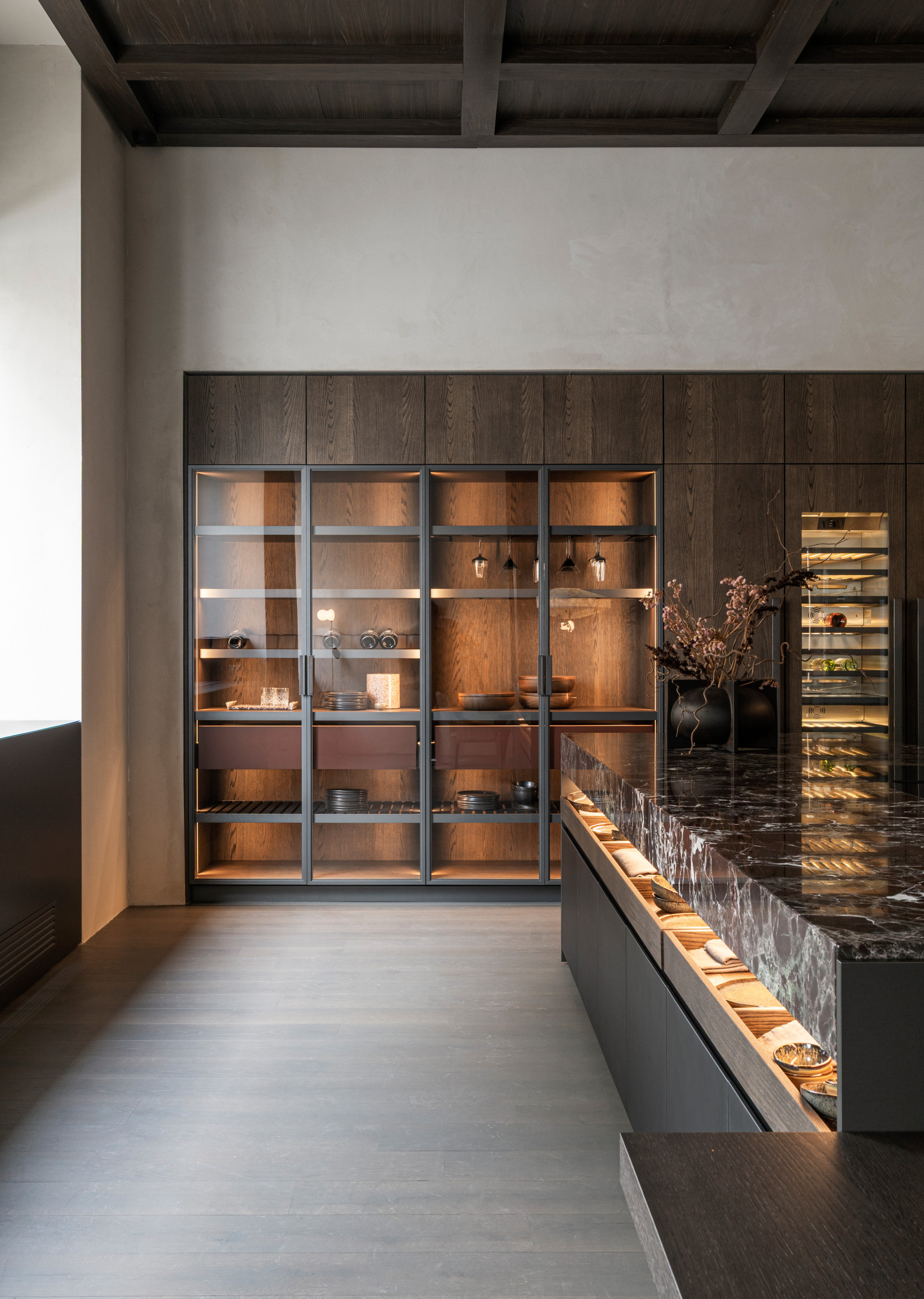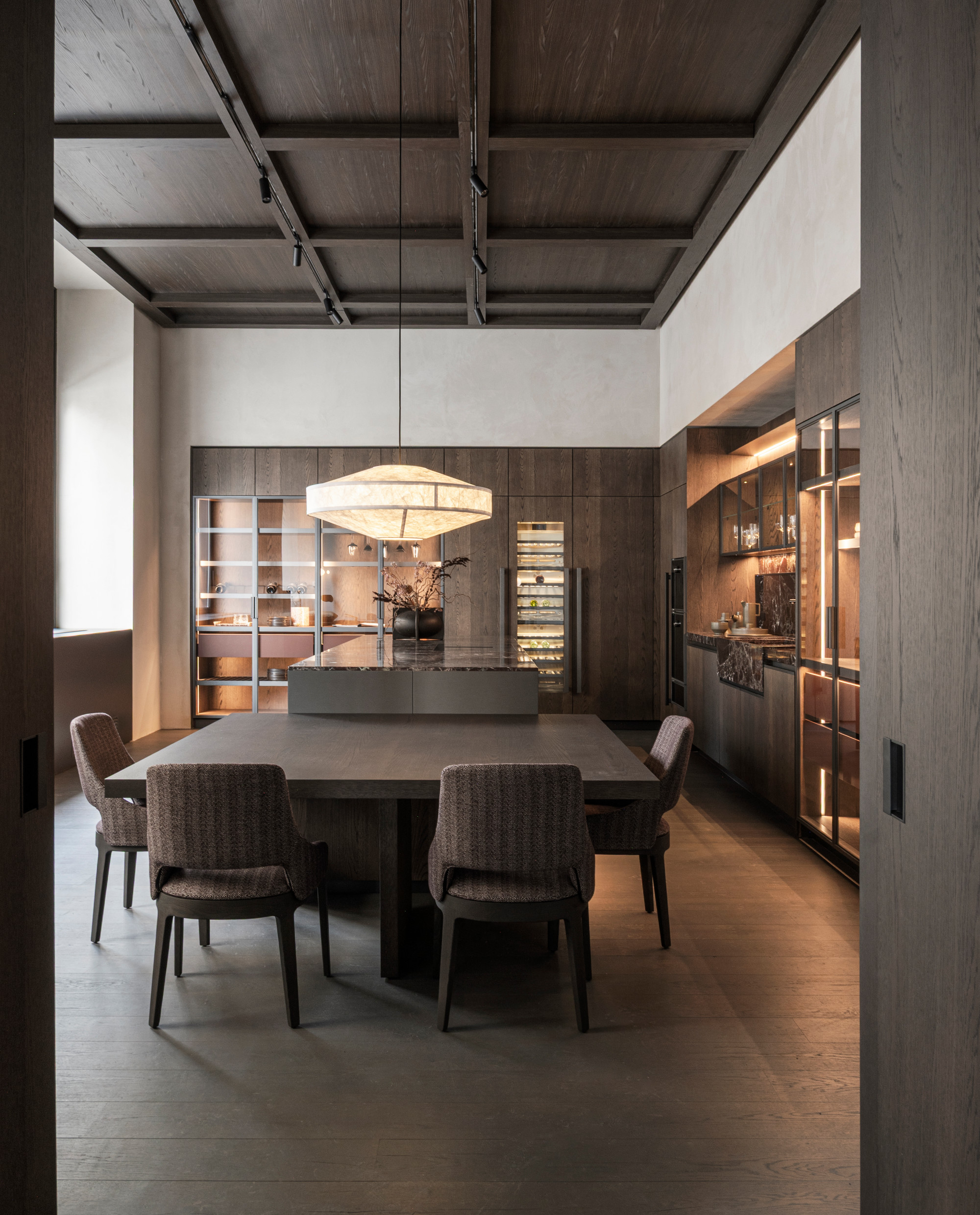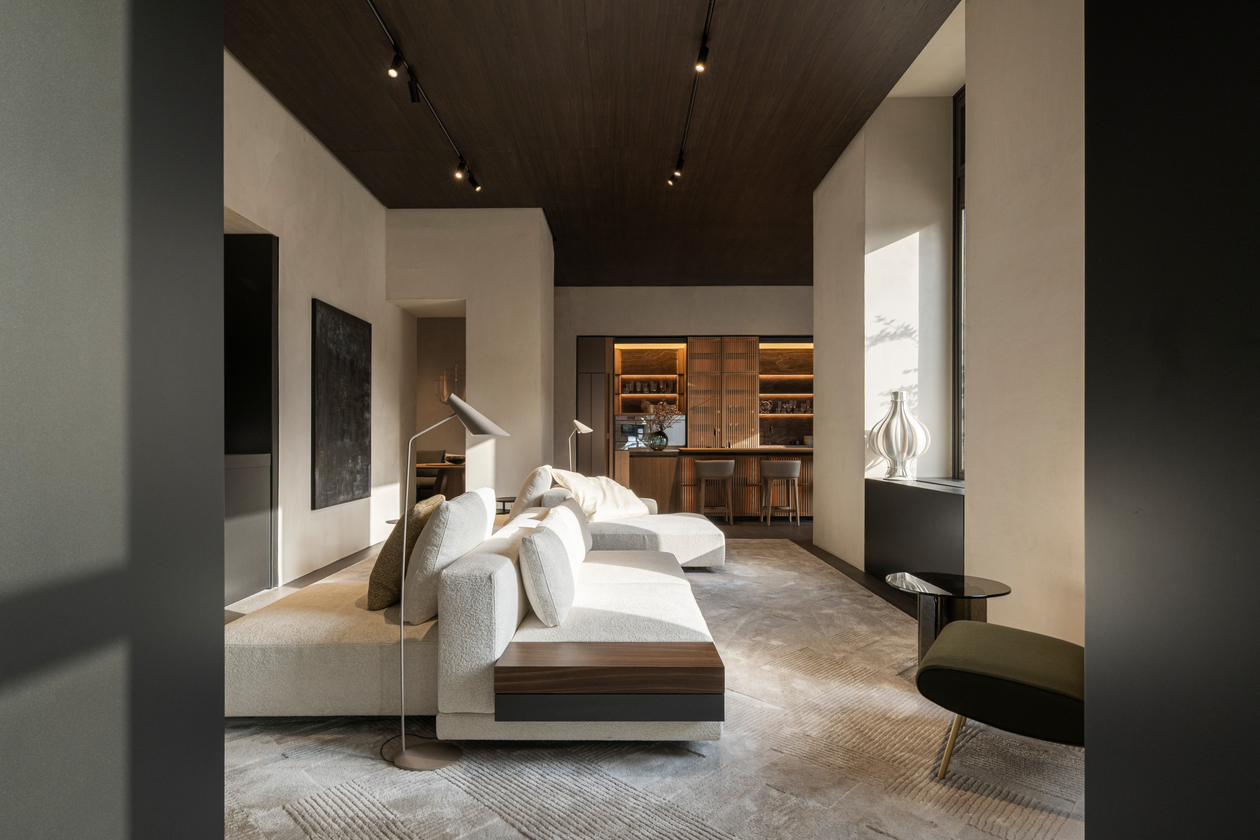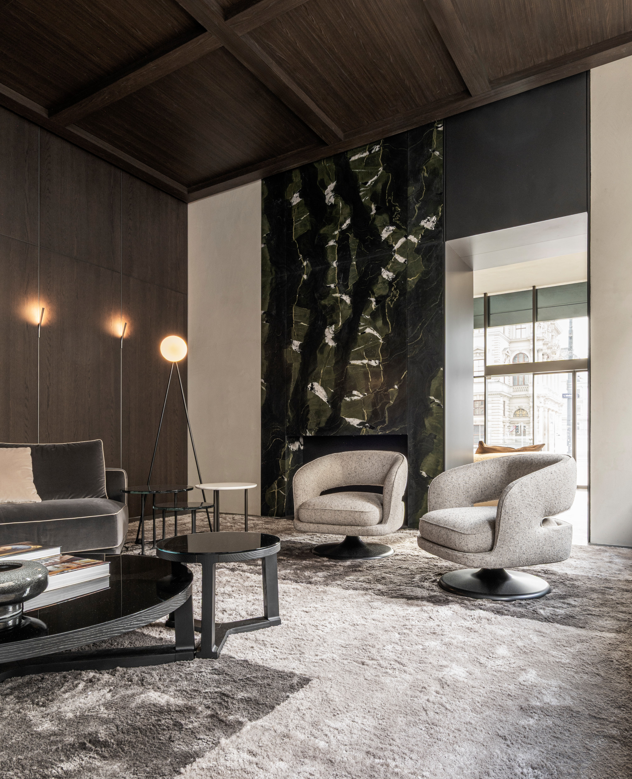 Spanning approximately 400 square meters across two levels, including the outdoor environments, the Vienna Flagship Store offers a dynamic dialogue between classical Viennese architecture and the refinement of contemporary Italian design. The store's immersive layout showcases the Molteni&C Collection in a spirit of timelessness, warmth, and a homelike feel.