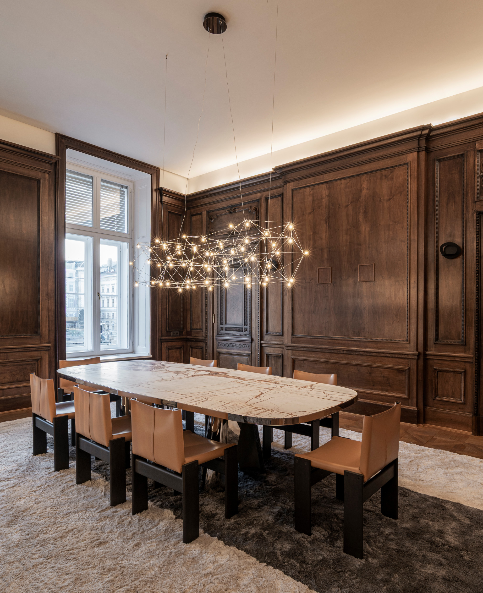 The Molteni&C Vienna Flagship Store is located in a historic building on Schubertring 14, one of the most prestigious addresses in Vienna's city center. The magnificent residential and commercial building was constructed in 1863 in the historicist style and was designed by architects Johann Romano and August Schwendenwein, who had a decisive influence on the architectural appearance of Vienna's Ringstrasse.
