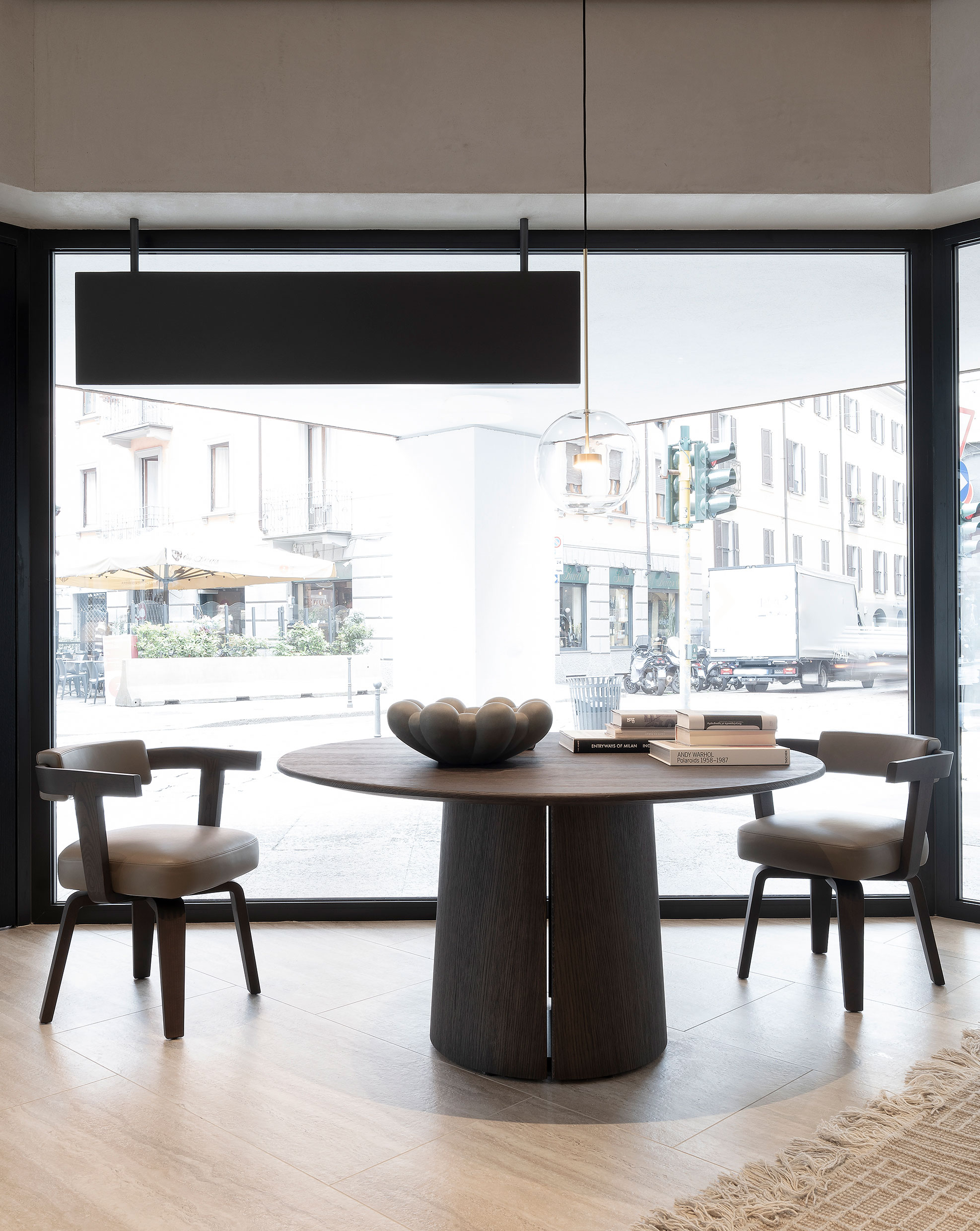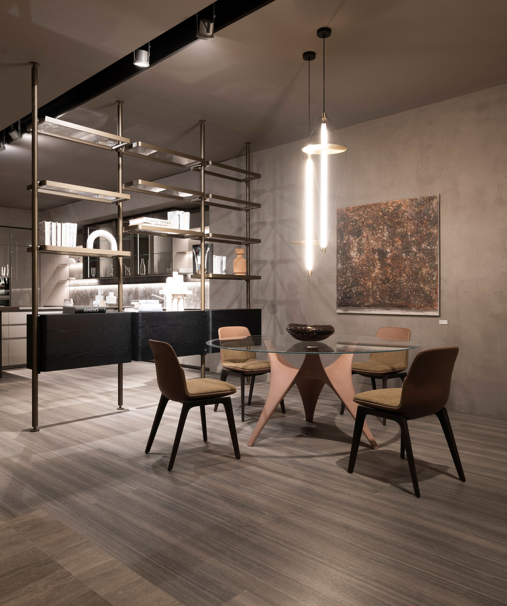Molteni&C inaugurates its Boutique on the corner of Via Solferino and Via Pontaccio: a new look for this historic showroom, expanded and renovated thanks to a project by the architect and creative director, Vincent Van Duysen. The large windows of the boutique frame some of the brand’s items, introducing guests to the material itinerary experienced within. The interior features the light tones of the sunrise oak covering the walls and the travertine chosen for the flooring. It is an elegant, domestic environment offering a series of suggestive settings. Offering an experience in pure Molteni&C style, it showcases some of the brand’s most recent collections and iconic pieces created through collaboration with great designers and international architecture firms.