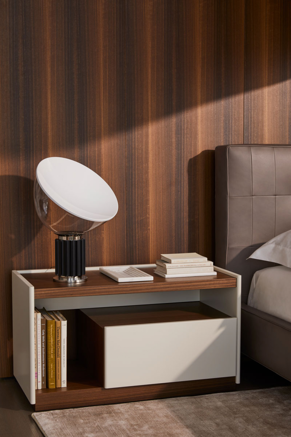 Located on the 59th floor within the luxurious 64-story Tribeca building, 59East is a 3,057-square-foot, three-bedroom residence featuring a diverse and luxurious mix of Molteni&C sectional sofas, chairs, tables, nightstands, chests, rugs, beds and more. Of great relevance, the iconic pieces designed by Gio Ponti and part of the Molteni&C Heritage Collection, such as the D.154.2, D.151.4 armchairs and the D.859.1 table.