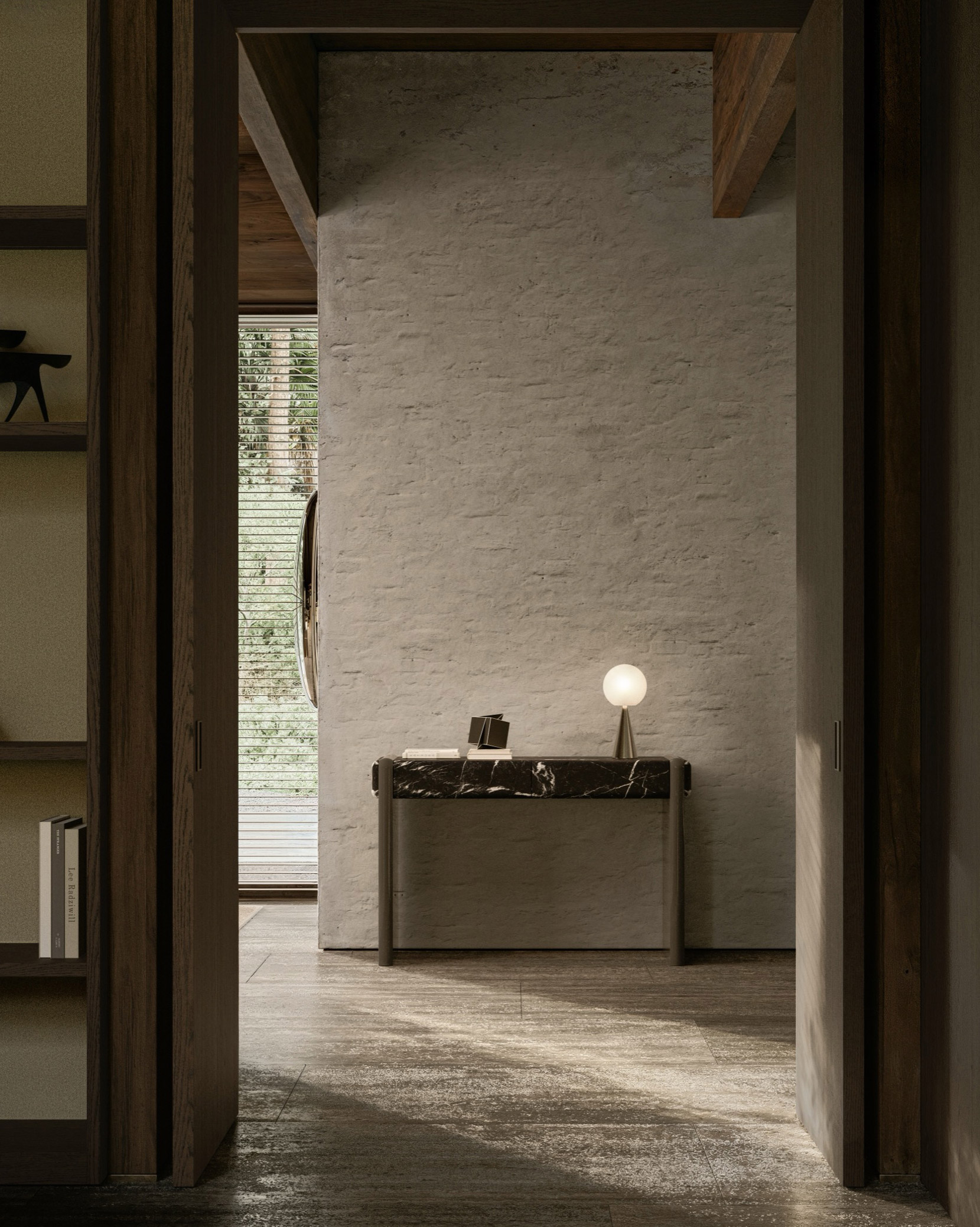 比例关系强调平衡与稳定,使条桌能够从容融入过渡空间,而不喧宾夺主。桌腿与桌体的衔接处是视觉焦点,并作为结构性细节,赋予作品沉稳特质。