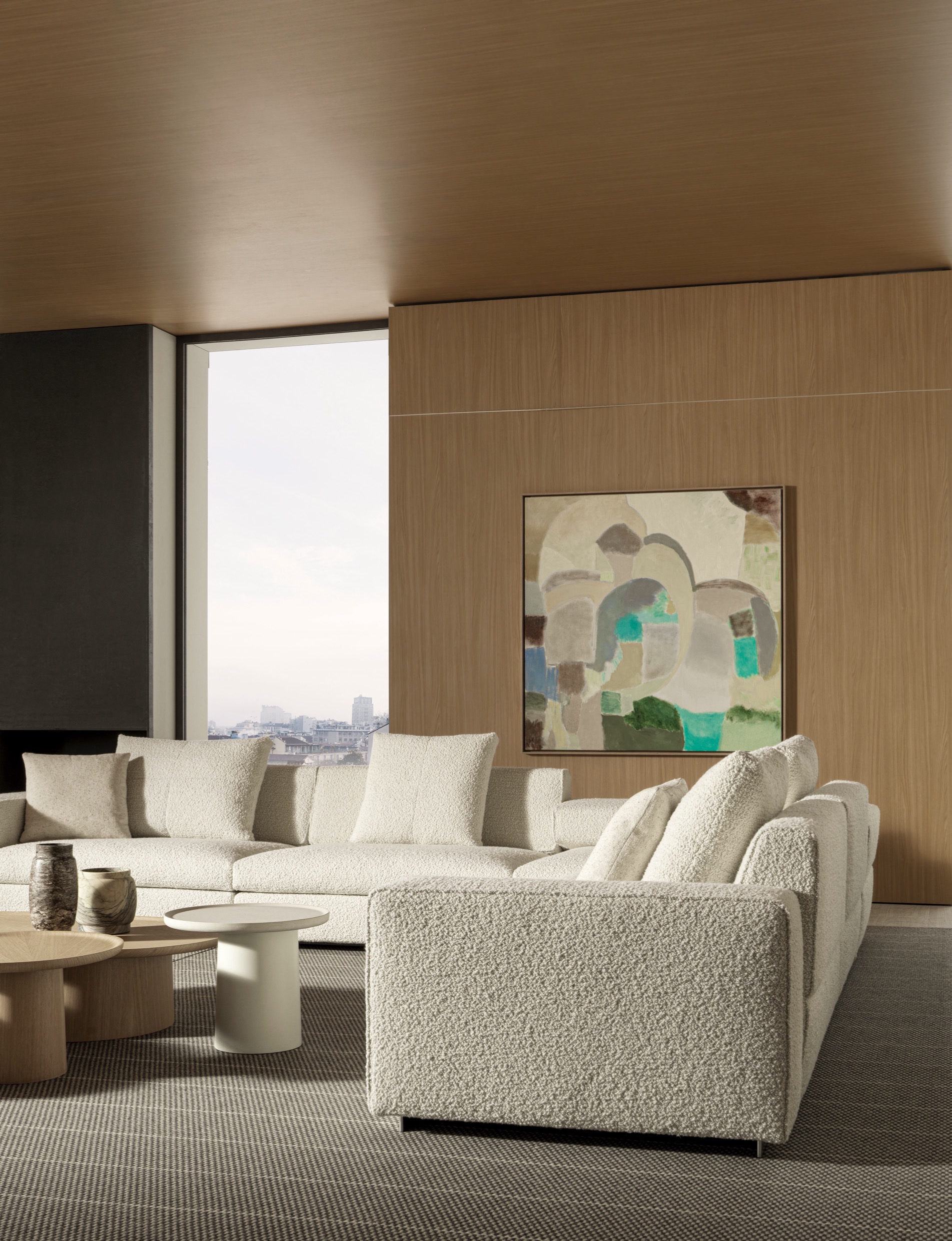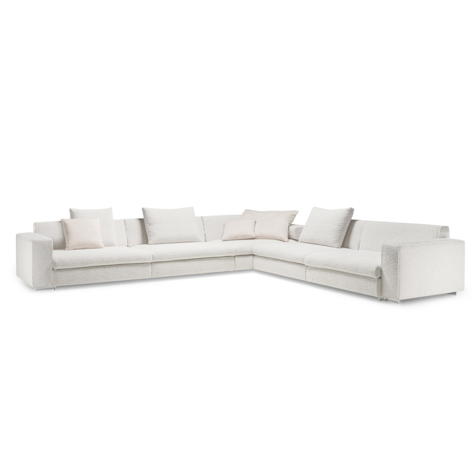 Settees in various sizes, corner pieces, chaises-longue and pouf can be combined together to create different furnishing solutions.