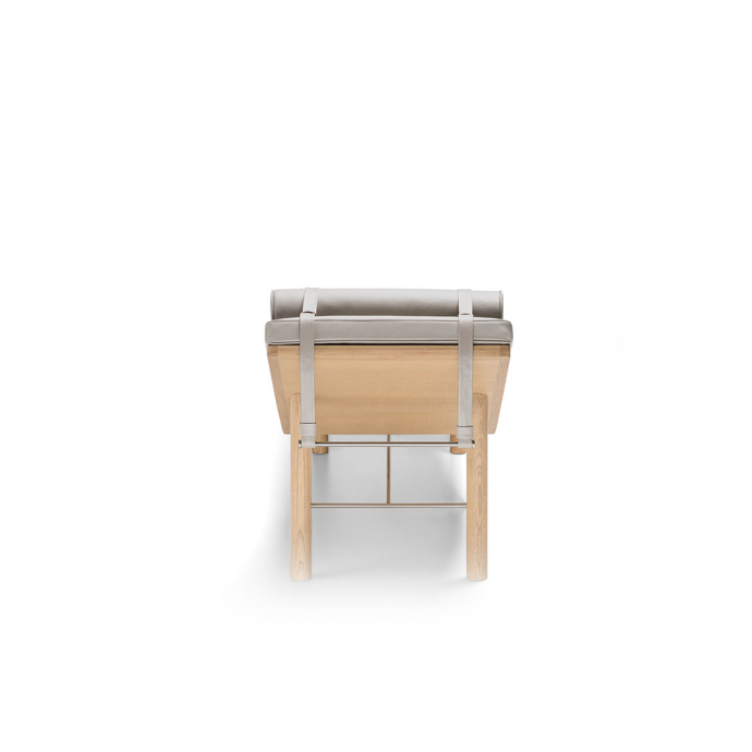 Molteni&C 的研发部门通过精细的技术开发,与设计师深泽直人一起创造了躺椅独特形状的理想比例。圆滑的支腿由实木制成,并通过缎面黄铜 H 型框架连接,为躺椅提供坚固支撑的同时又不失时尚。