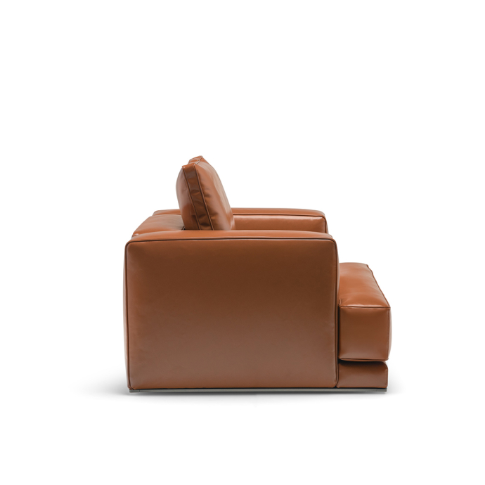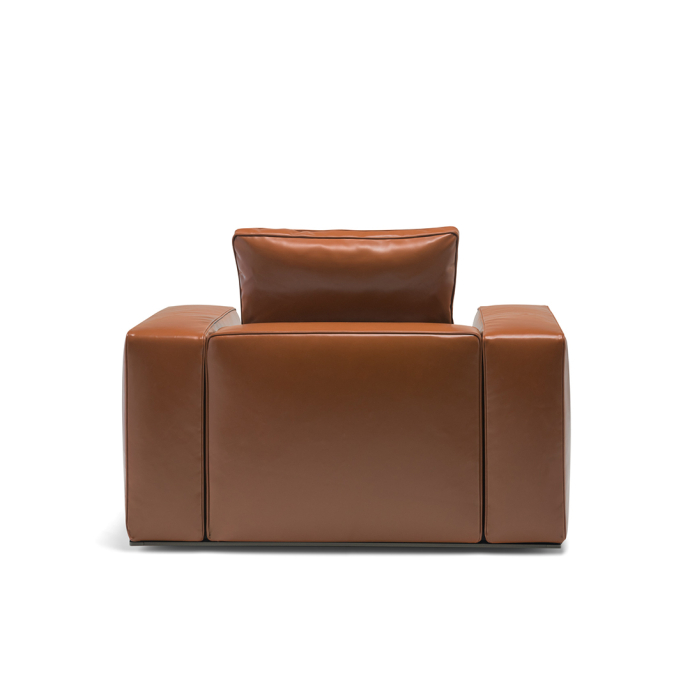 Similar to the Augusto sofa, the Augusto armchair is made from high-density foam padding and soft seat cushions made from recycled PET polyester fiber. The meticulously designed base of the series features elegant piping and aluminum feet with non-slip tips, ensuring stability and durability while aligning with Molteni&C's eco-conscious ethos.