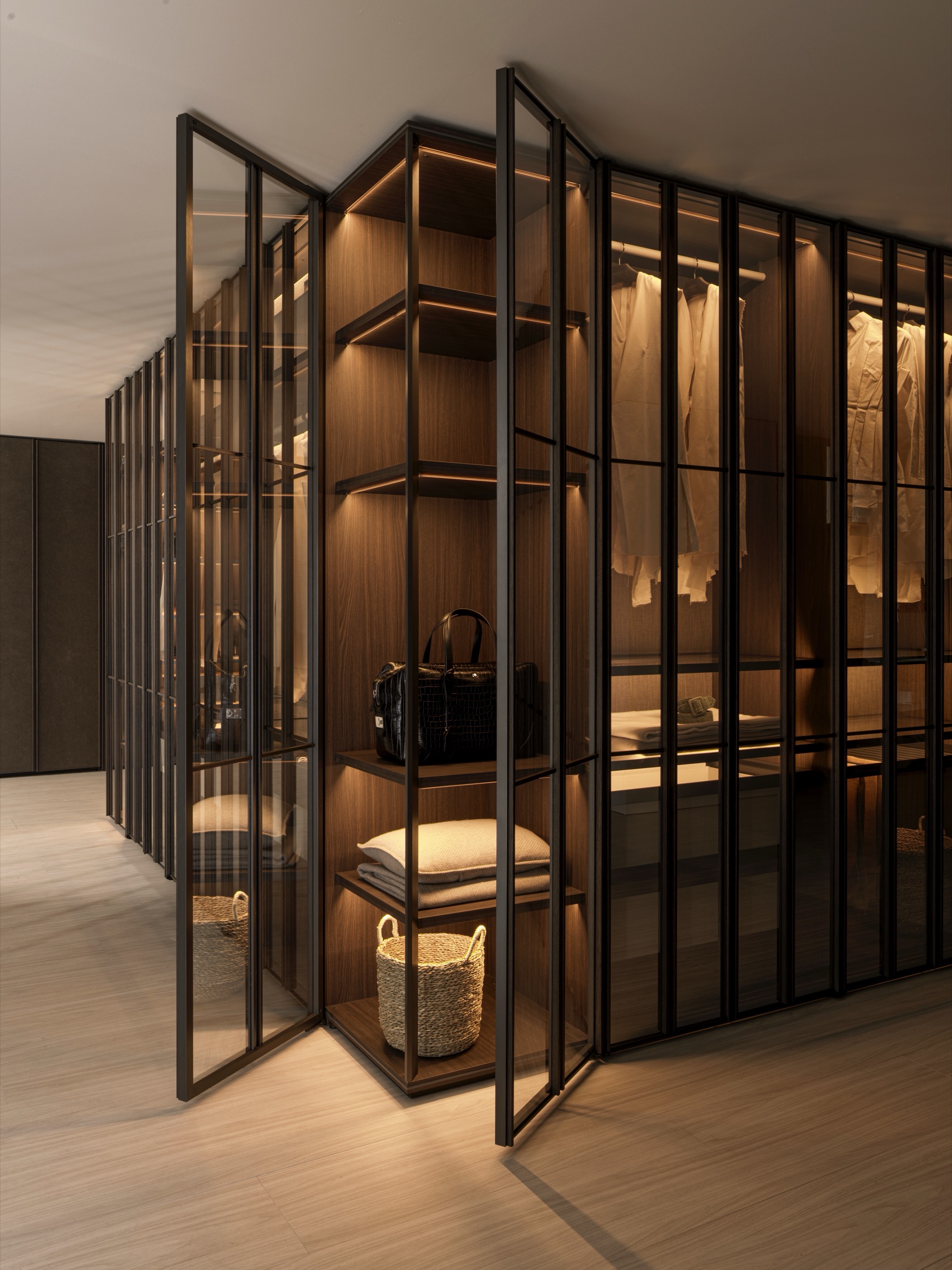 With Meridian, Studio Klass proposes an innovative approach to glass wardrobe doors, seamlessly integrating innovation and craftsmanship into Vincent Van Duysen’s iconic Gliss Master wardrobe system. A bold departure from conventional design, Meridian elevates the wardrobe into a statement of refined architecture and material sophistication. It is the first glass door with decorative divisions.