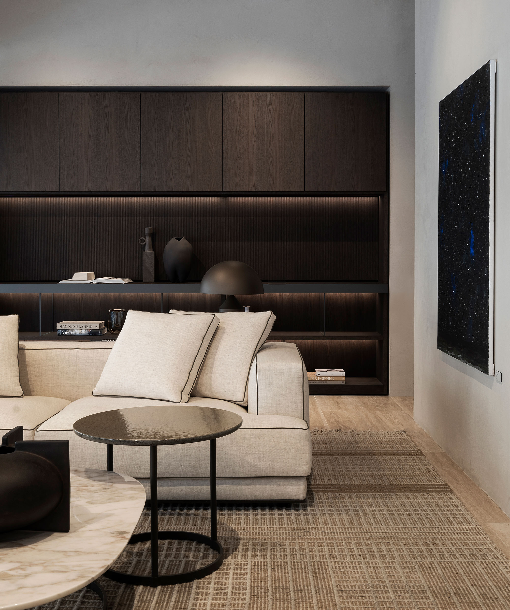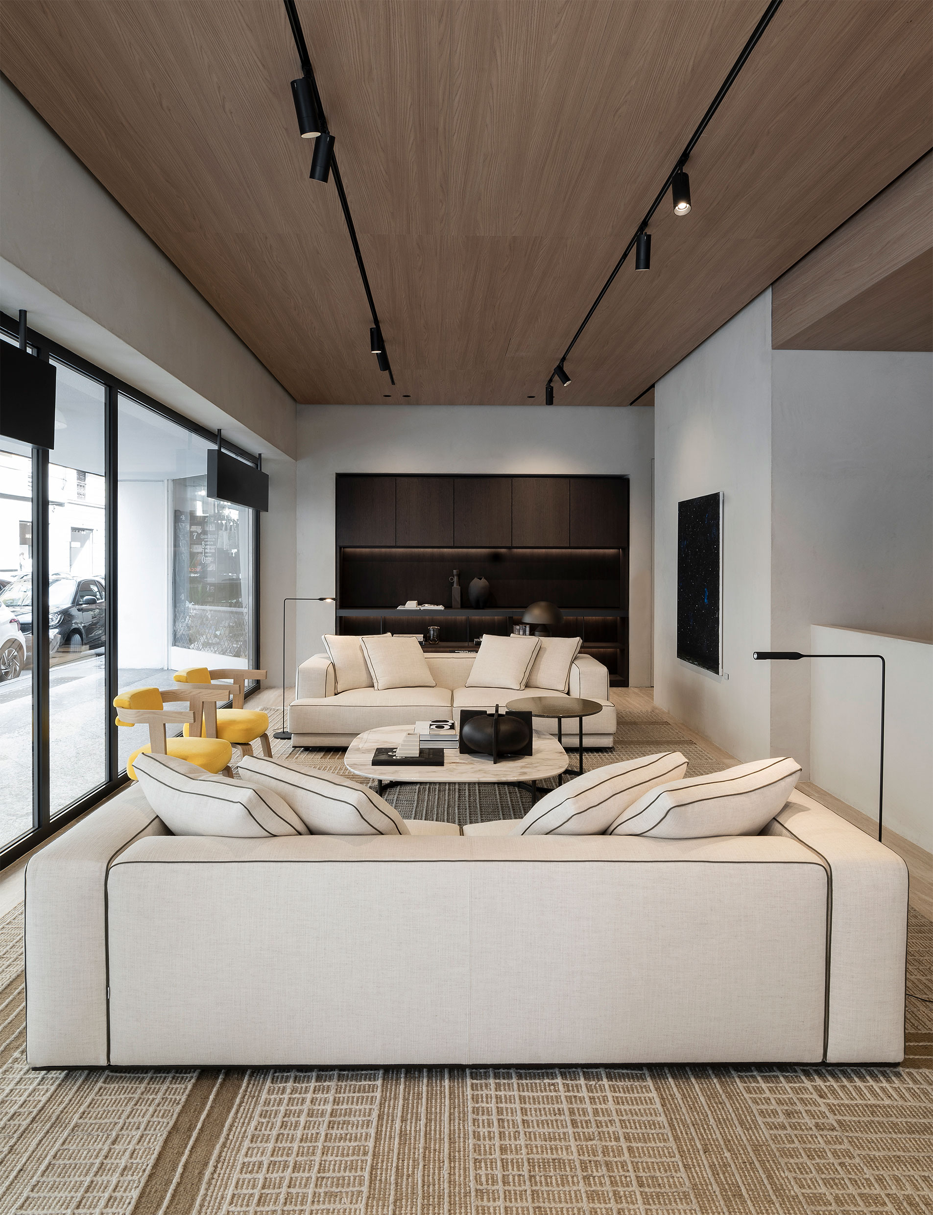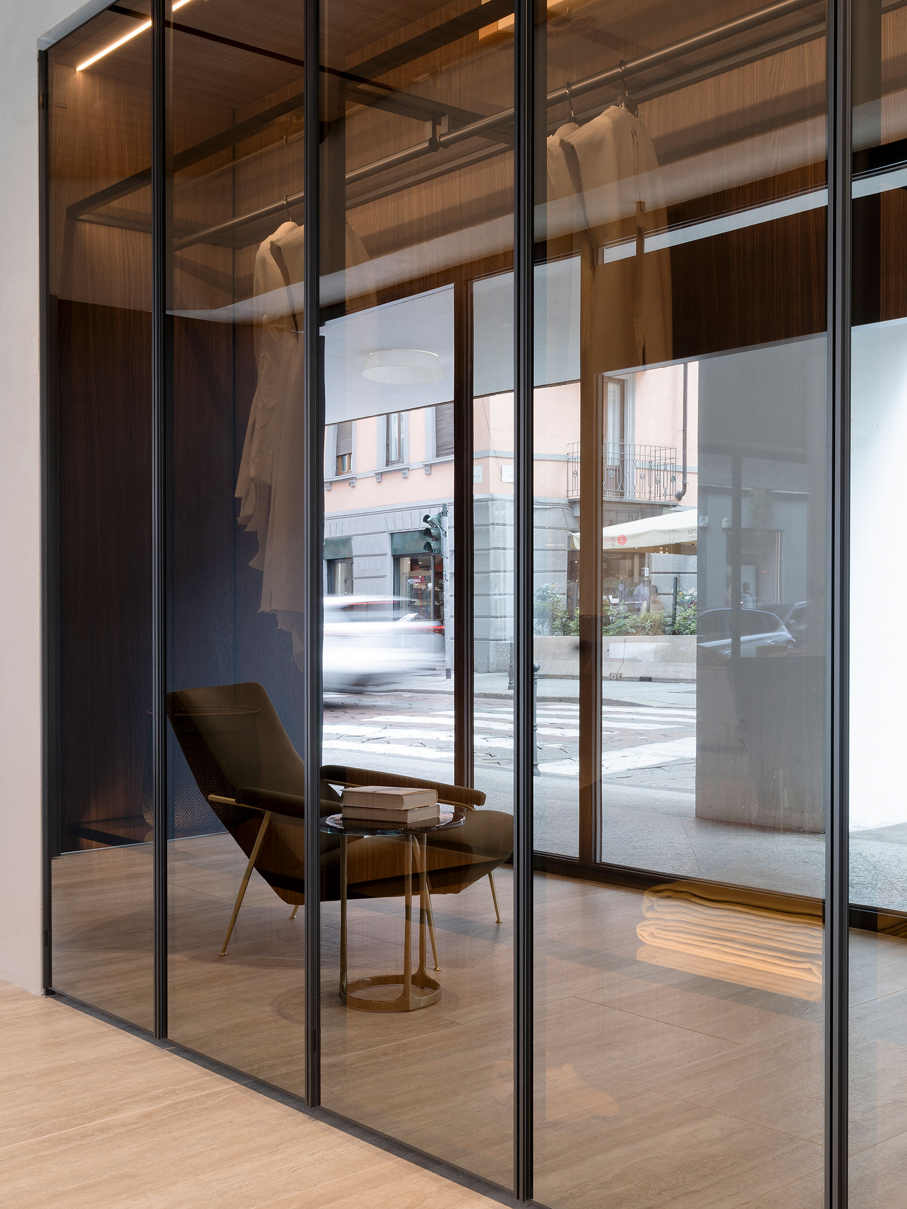 Molteni&C inaugurates its Boutique on the corner of Via Solferino and Via Pontaccio: a new look for this historic showroom, expanded and renovated thanks to a project by the architect and creative director, Vincent Van Duysen. The large windows of the boutique frame some of the brand’s items, introducing guests to the material itinerary experienced within. The interior features the light tones of the sunrise oak covering the walls and the travertine chosen for the flooring. It is an elegant, domestic environment offering a series of suggestive settings. Offering an experience in pure Molteni&C style, it showcases some of the brand’s most recent collections and iconic pieces created through collaboration with great designers and international architecture firms.