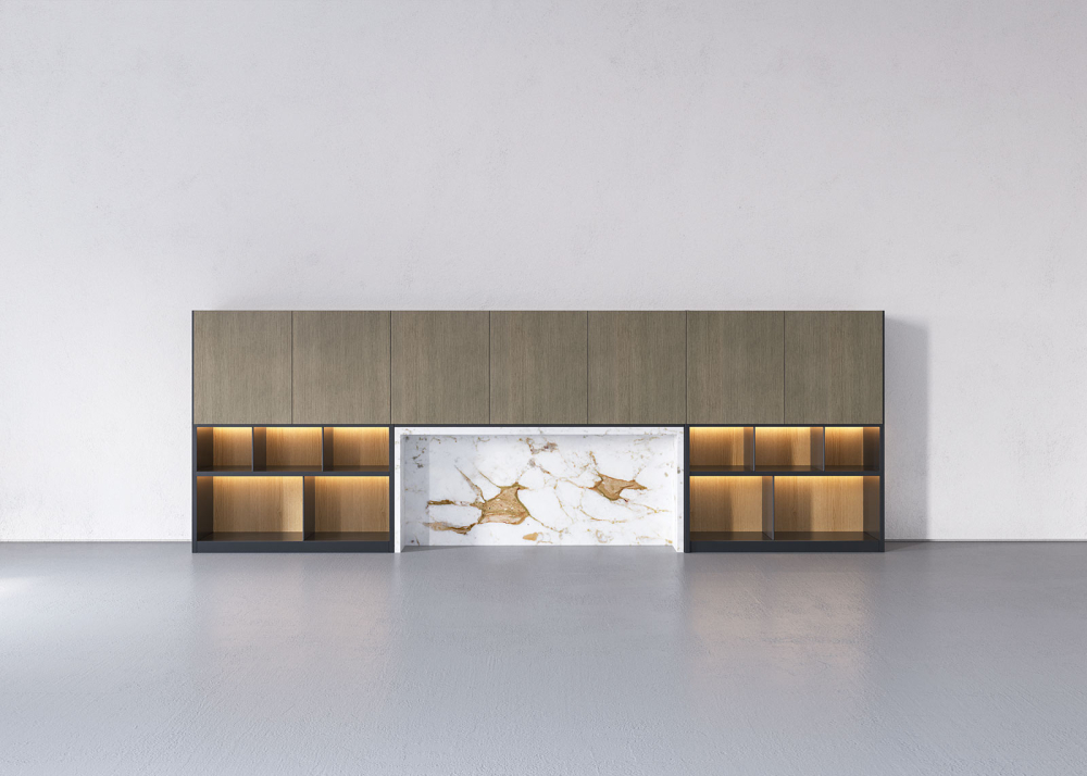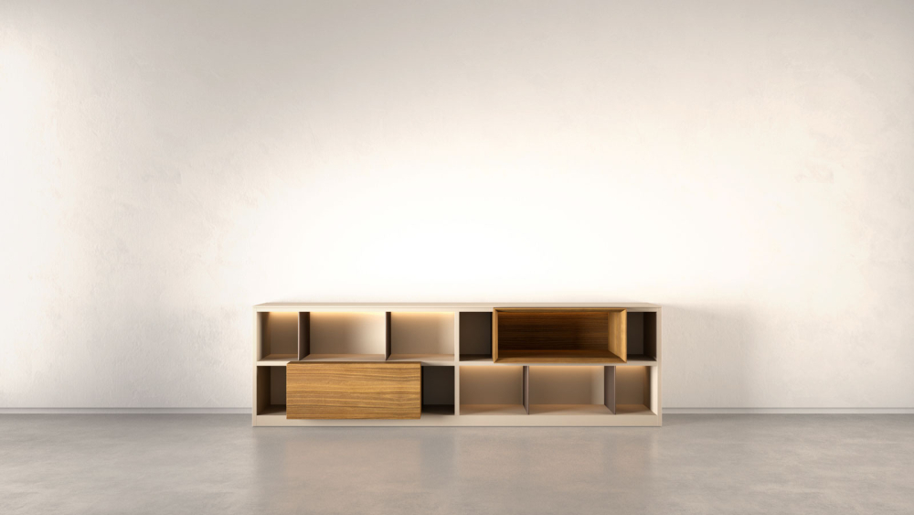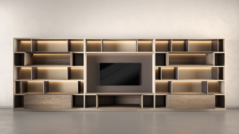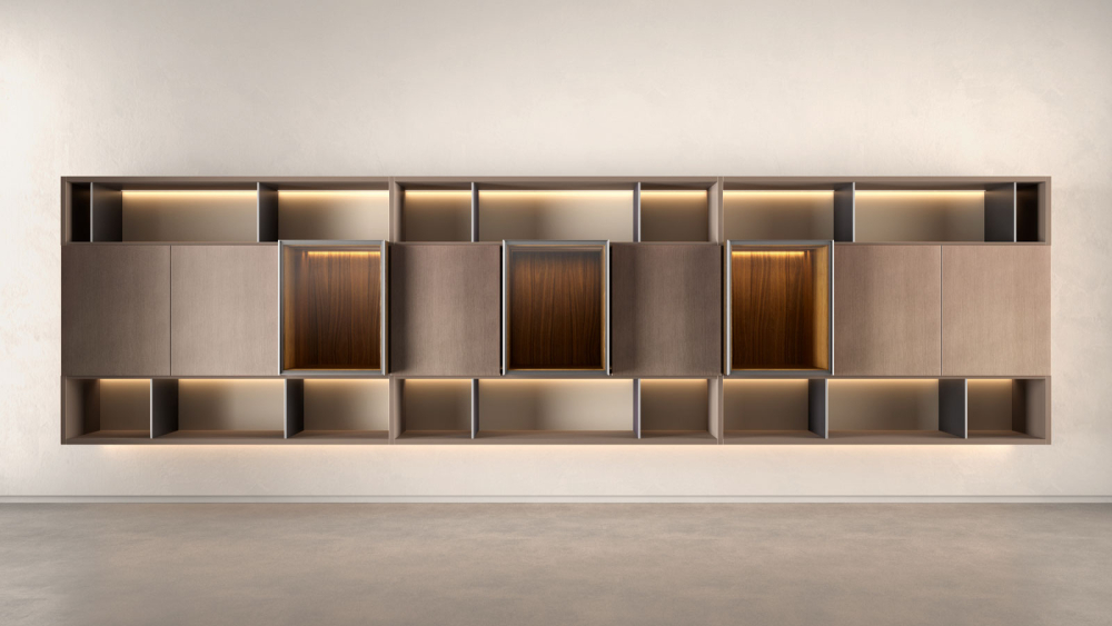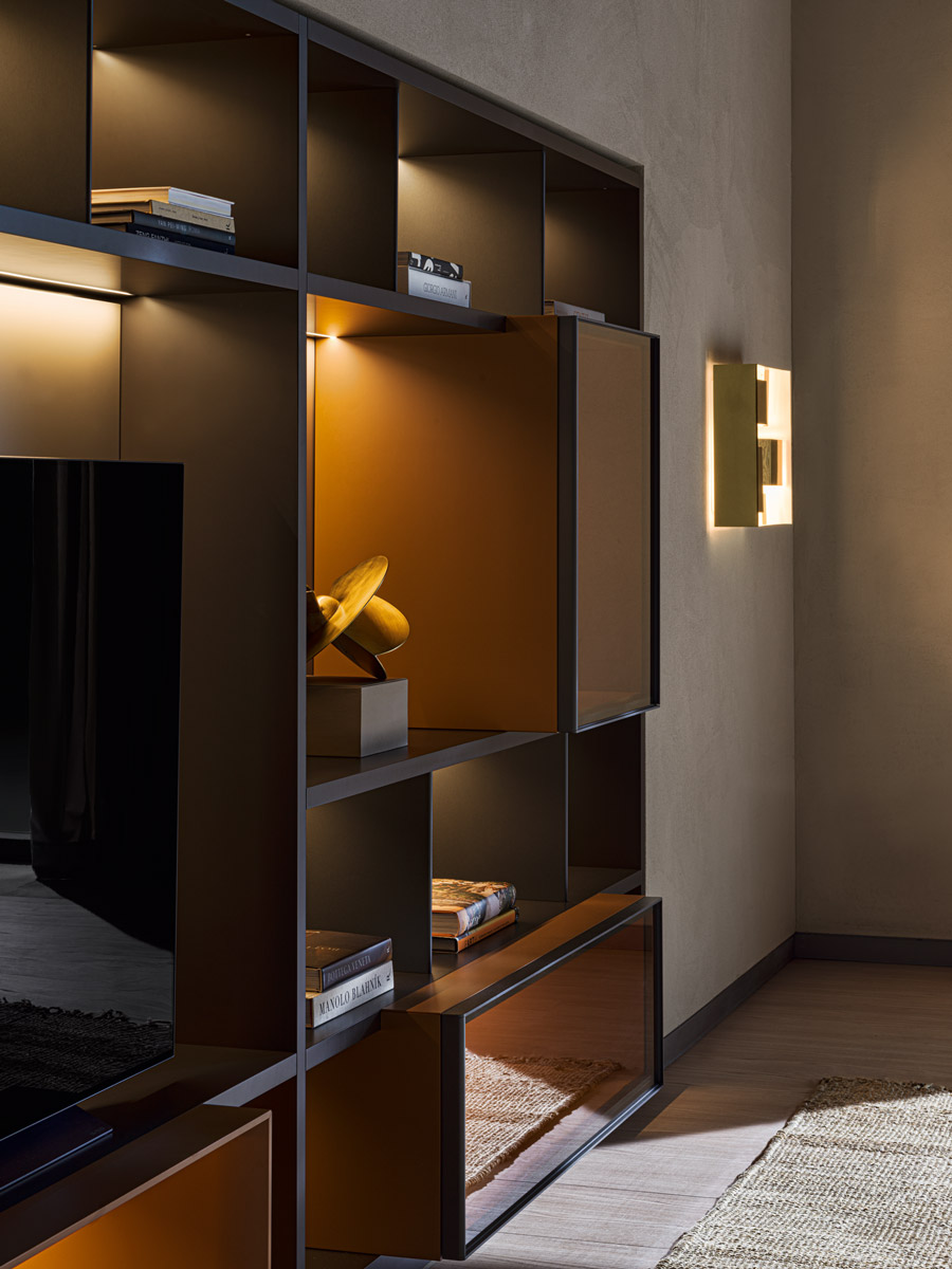 The 505 UP system, a hallmark in Molteni&C's range of modular furniture for living areas, continues its evolution to cater to contemporary lifestyle demands. Born not only as a project for furniture but also for architecture, it creates space and plays with geometries reminiscent of buildings in a city.