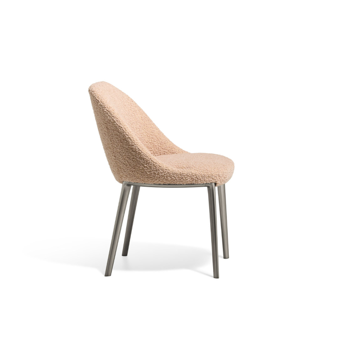 The Atelia chair by GamFratesi is conceived around the concepts of care, proportion, and closeness to the body. Its design focuses on the seated experience, supporting without rigidity in a design that is composed without appearing formal. Compact and measured, the chair's silhouette allows it fit naturally into dining and living contexts alike.