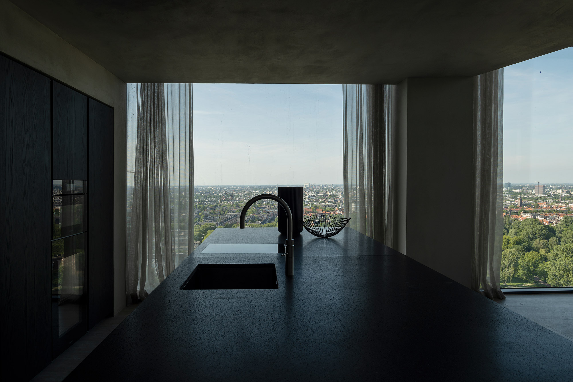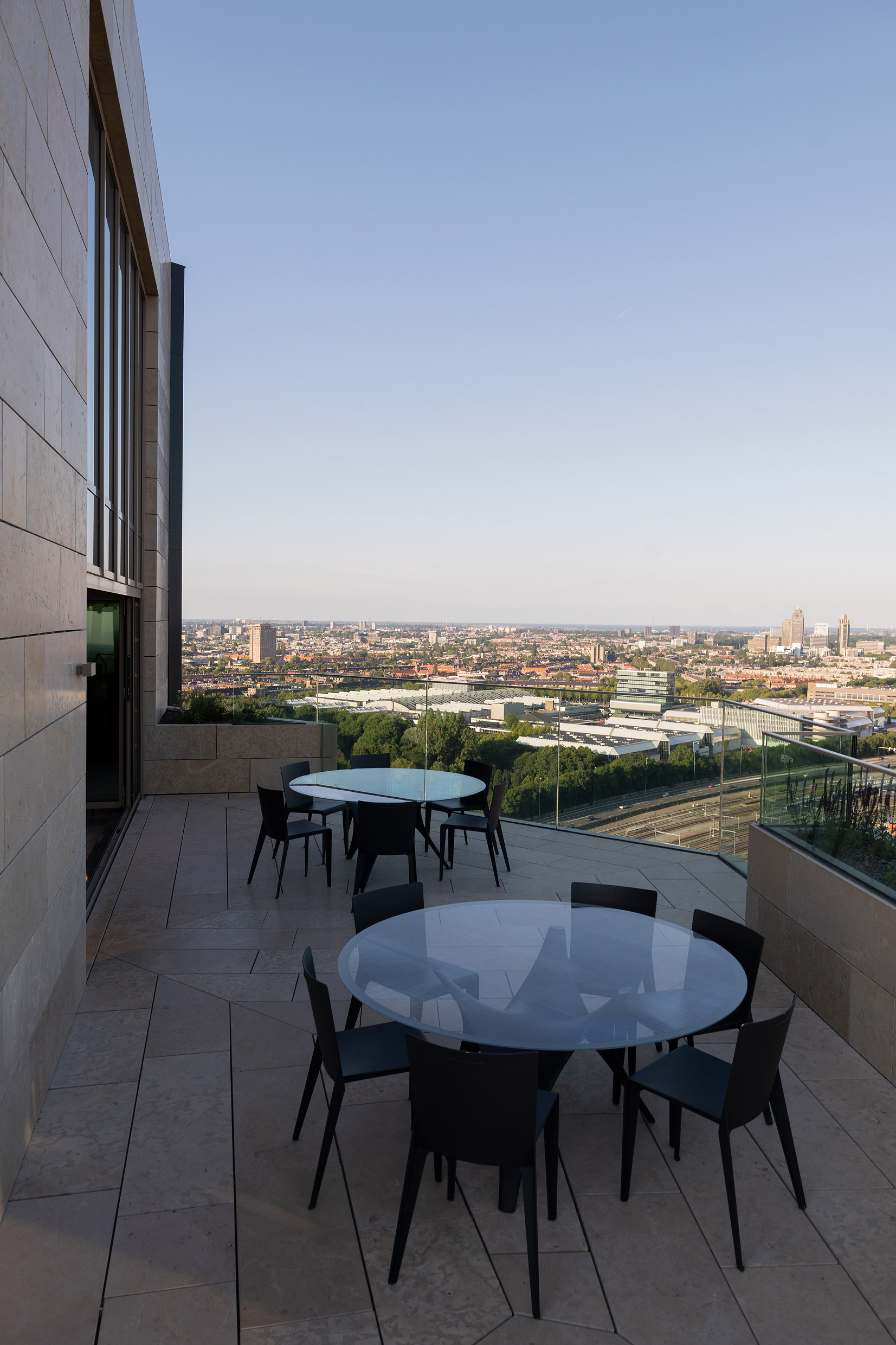 The Molteni&C|Dada experience continues on the 26th floor. A magnificent Penthouse with a great view over the city provides the background to the GREEN gastrobar of the celebrated chef Peter Lute. Two spacious lounges invite guests to make themselves comfortable after lunch or for a drink at sundown in front of the wide windows: on one side a pair of Lucas sofas creates a specular lounge, next to the Walter armchairs designed by Vincent Van Duysen. On the opposite side of the floor the Gregor sofa creates a conversation corner complete with the Kensington armchair, designed by Rodolfo Dordoni.