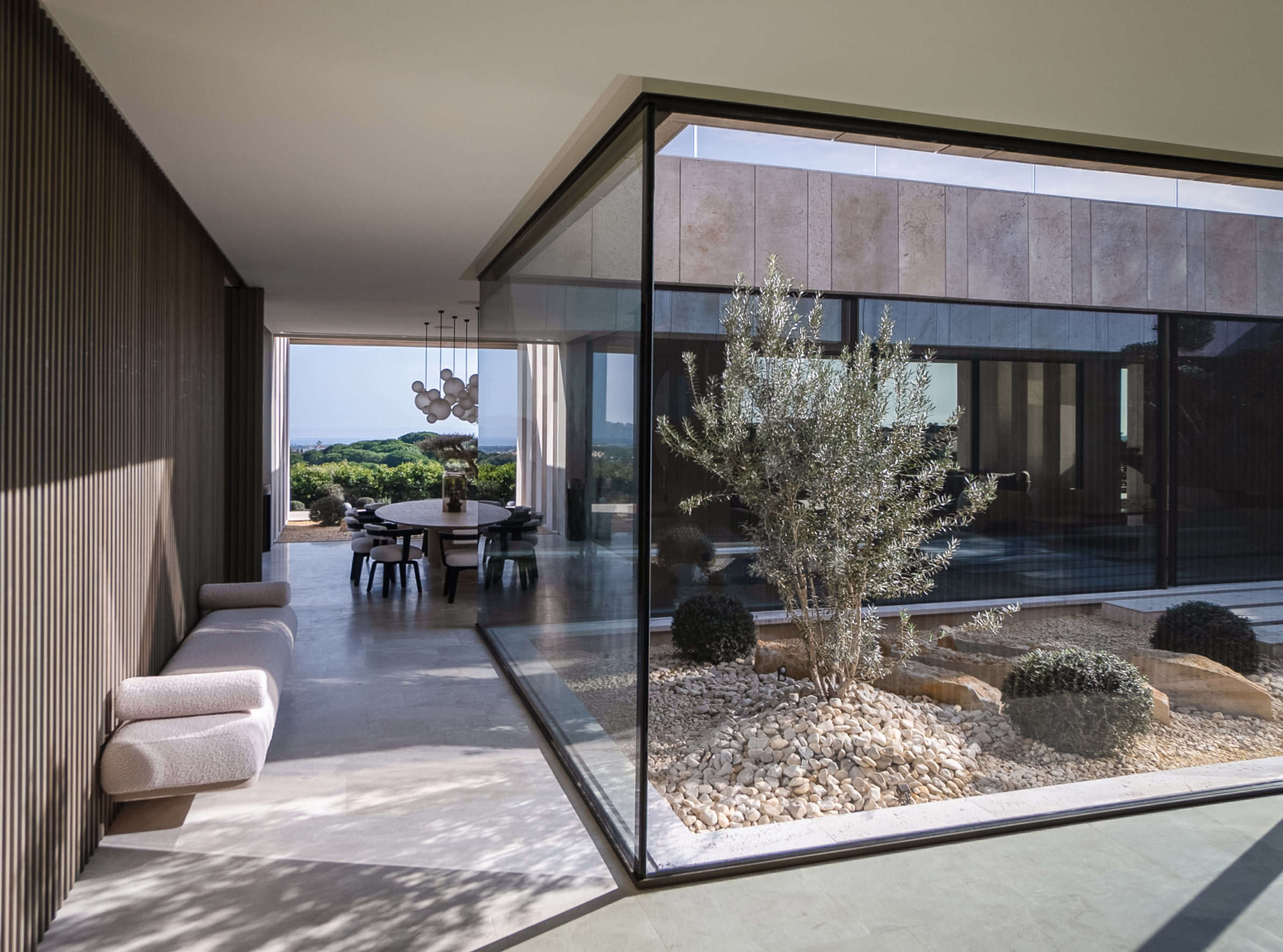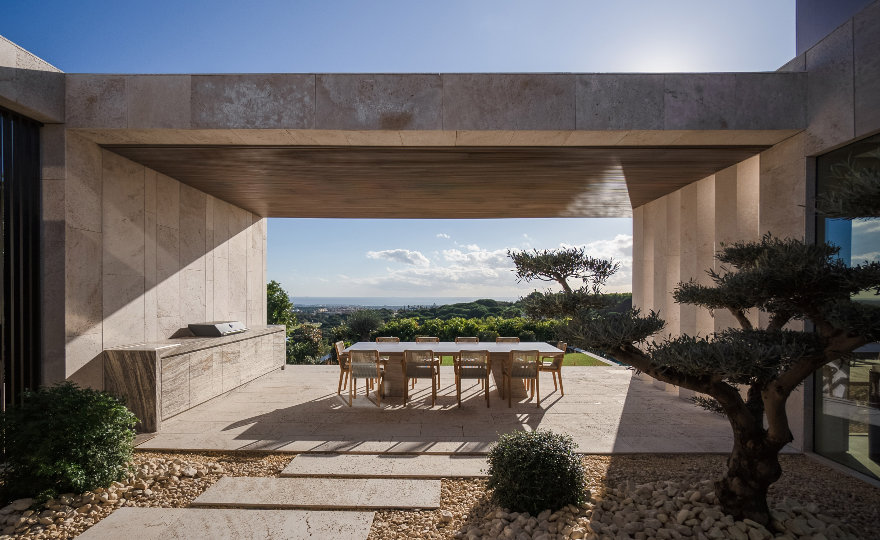 Nestled within the picturesque landscape of La Reserva in Sotogrande, Spain, TAI Villa is a striking example of contemporary architecture that seamlessly integrates with its natural surroundings. Designed by Manuel Ruiz Moriche of ARK Architects, the villa embodies the timeless principles of Mediterranean living — openness, harmony with nature, and the use of noble materials. Perched on a hillside podium of stone and wood, its elevated volume offers breathtaking views of the Mediterranean Sea, creating an uninterrupted dialogue between interior and exterior spaces.